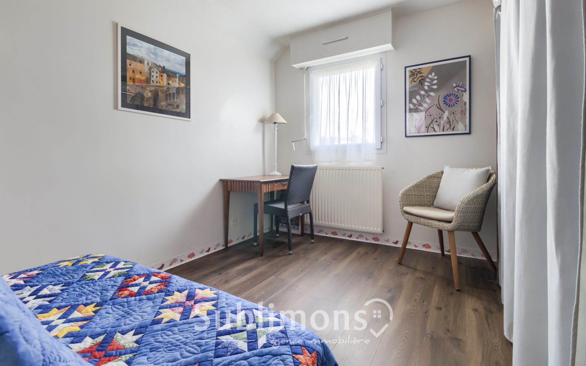 Côté nuit, deux chambres confortables (dont une avec placard) permettent d'installer facilement un espace parental et un bureau ou une chambre d'enfant. Une salle d'eau fonctionnelle et des WC séparés complètent l'agencement.