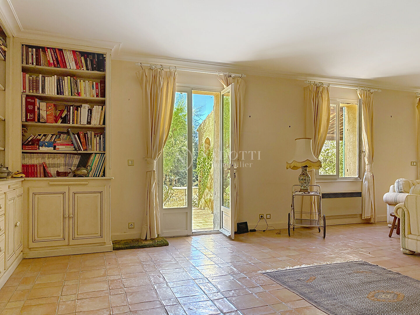 A l'extérieur : piscine 12x6, forage, tout à l'égout, arrosage automatique..