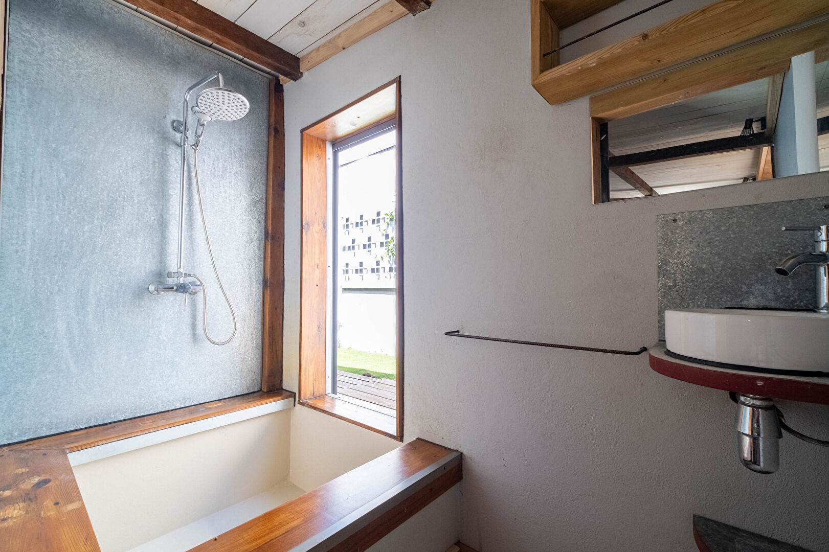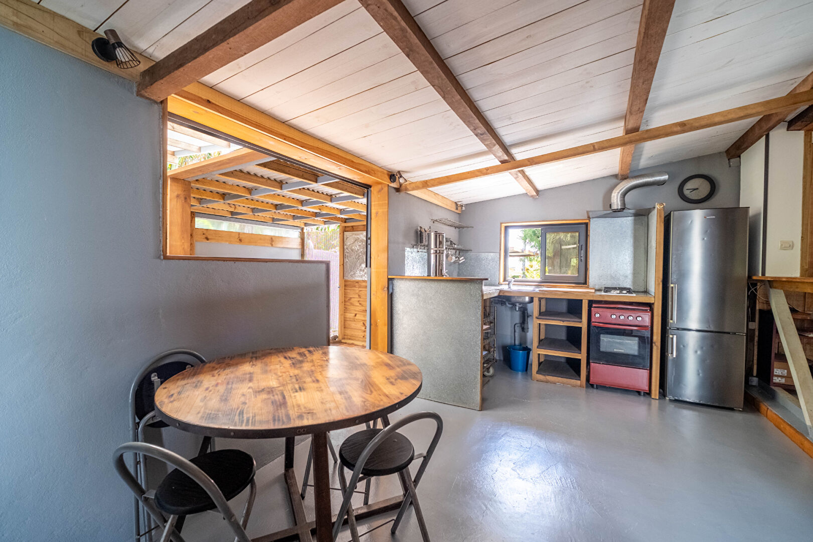 La maison principale offre une distribution fonctionnelle : Un séjour convivial, une cuisine ouverte sur la salle à manger donnant accès à une terrasse en bois et espace buanderie, deux chambres, une salle d'eau et WC indépendant