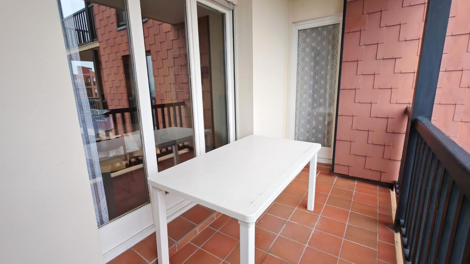 Dans résidence Proche centre-ville et Accès direct plage, Appartement comprenant : Entrée avec placard, salon-séjour donnant sur grande loggia, cuisine aménagée et équipée, une chambre, une salle de bains, un w-c. Belle vue dégagée.