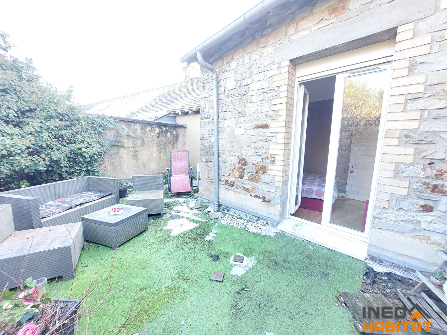 EXCLUSIVITE AMANDA, MAISON DE VILLE SITUEE A MONTREUIL LE GAST. Maison en pierre comprenant entrée, salon séjour, cuisine équipée, WC, Salle de bains. A l'étage palier, 2 chambres dont 1 avec accès terrasse, Salle d'eau, WC.