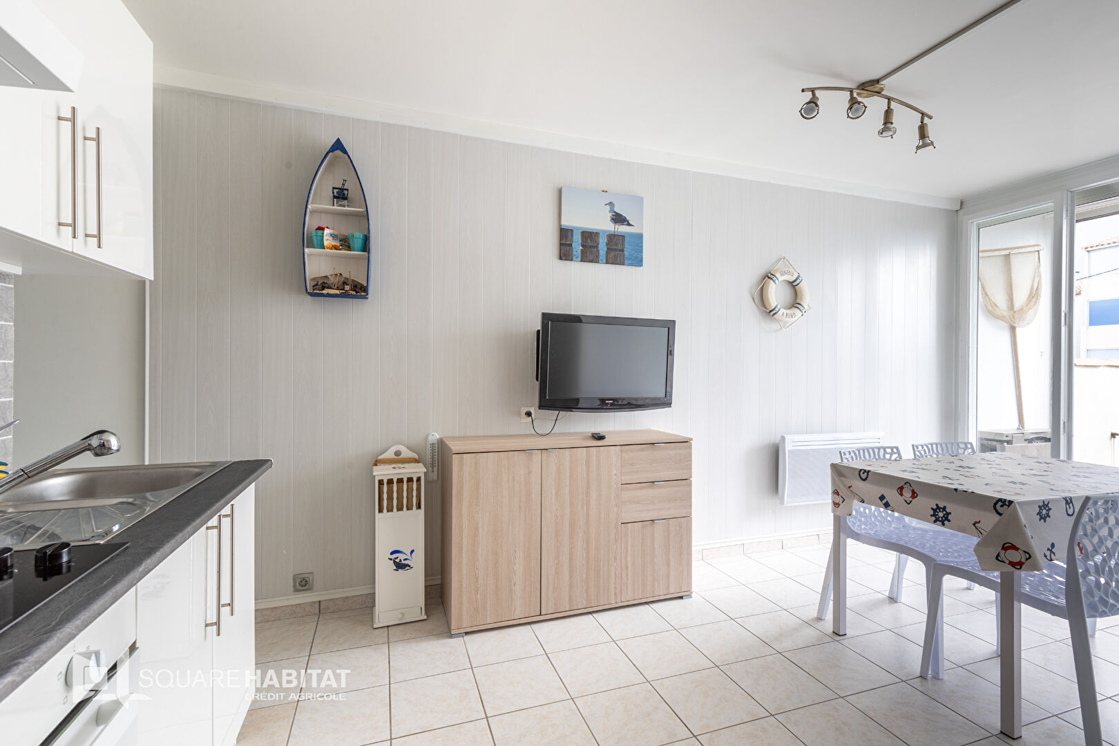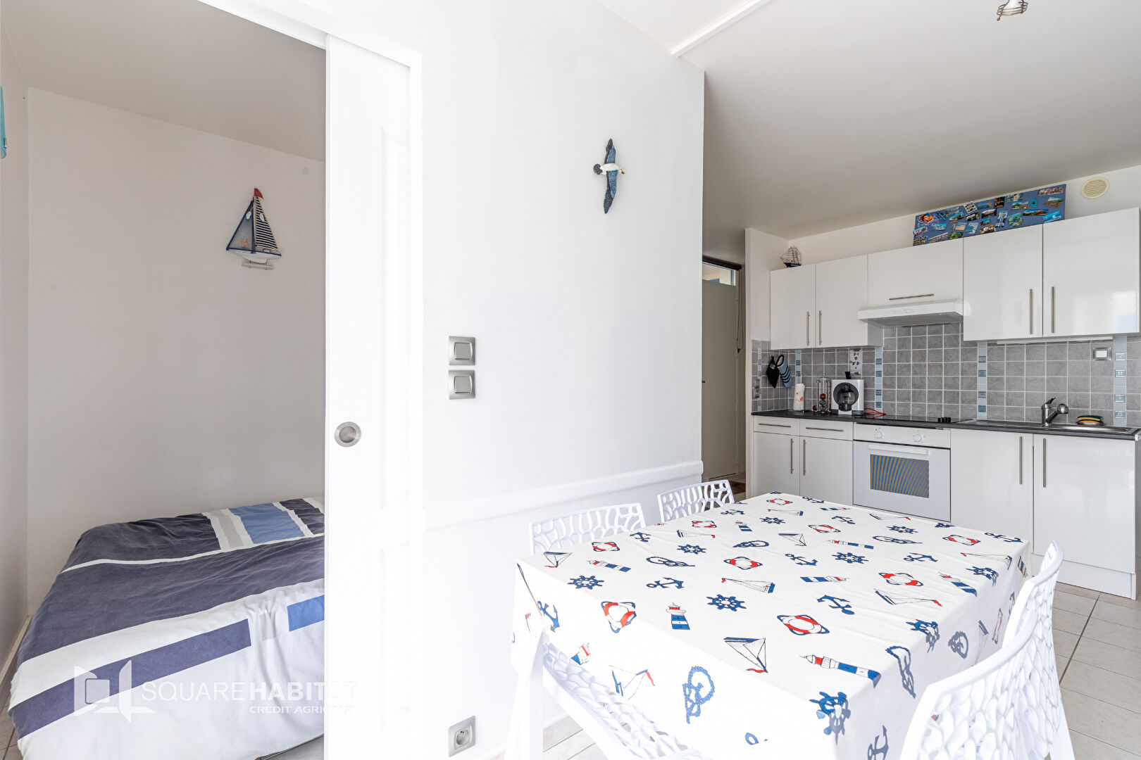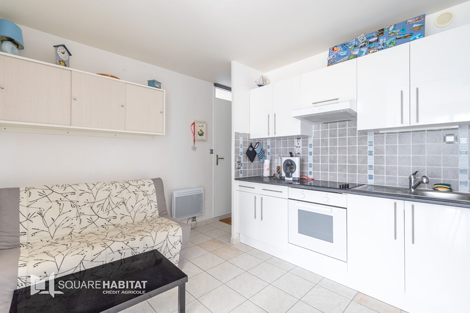 A quelques pas de la plage des Becs, charmant studio de plain-pied, se composant d'une entrée, d'un salon-séjour avec cuisine ouverte, d'une alcôve chambre, d'un cellier, d'une salle d'eau et de toilettes séparées.