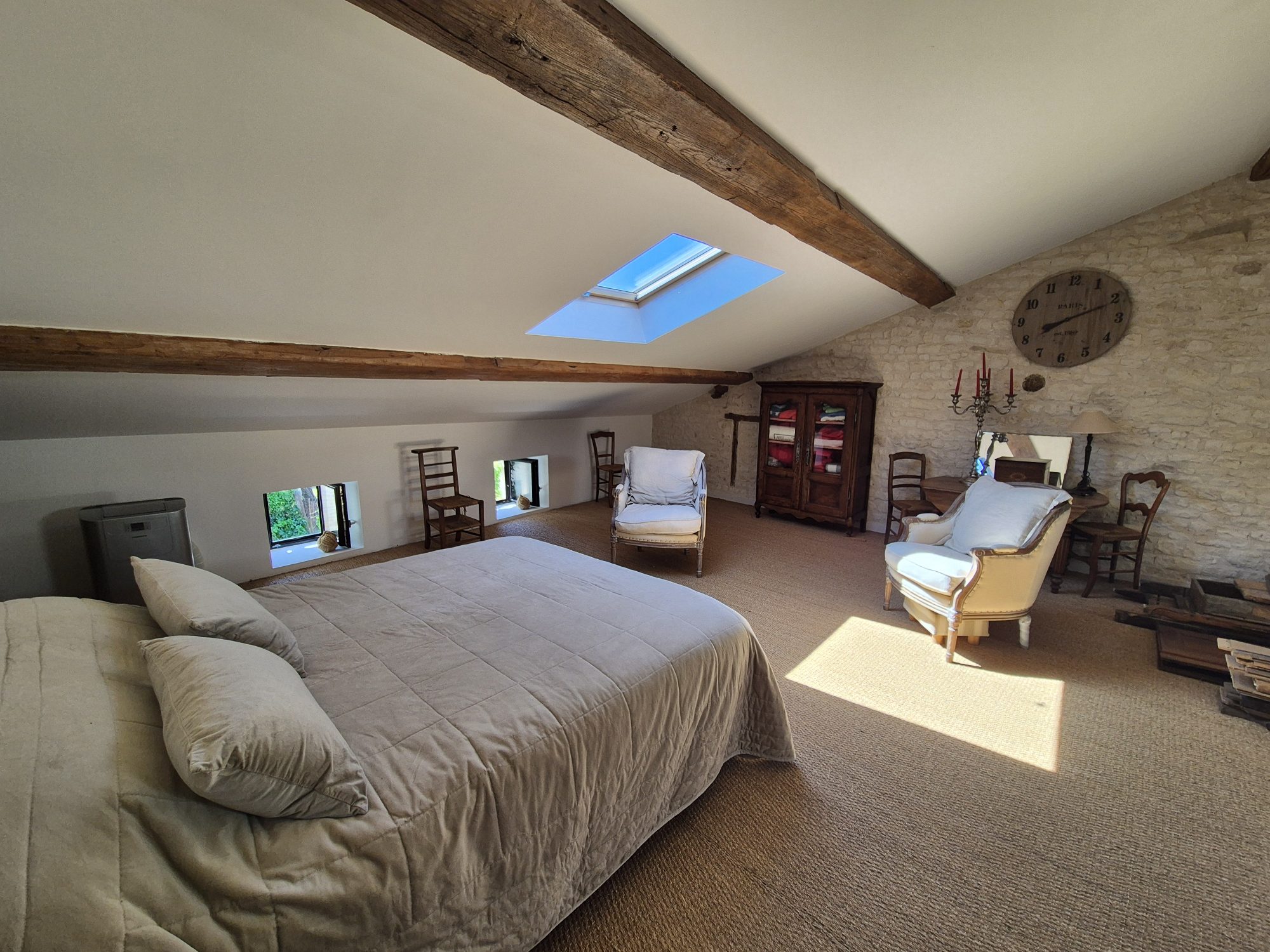 Découvrez cette magnifique maison de campagne partiellement meublée, rénovée avec goût en 2014, offrant une surface habitable de 362 m². Nichée sur un terrain de 1418 m², cette propriété allie charme rustique et confort moderne. Au rez-de-chaussée, vous serez séduit par le vaste séjour de 56 m², baigné de lumière naturelle grâce aux ouvertures en bois/PVC. La cuisine aménagée et équipée, de type coin cuisine, est un véritable espace convivial pour les repas en famille ou entre amis. Trois chambres spacieuses, dont une suite parentale avec salle d'eau privative, complètent ce niveau. À l'étage, vous trouverez deux autres chambres, une salle d'eau et un WC indépendant, offrant intimité et confort. La maison dispose également d'une cave de 21 m² pour ranger vos affaires. L'extérieur est tout aussi enchanteur avec un jardin de 900 m², parfait pour les journées ensoleillées. Profitez de la piscine de 8x4 m avec son local technique, idéale pour se rafraîchir pendant les chaudes journées d'été. Quatre places de stationnement extérieures sont également disponibles. Cette maison, en excellent état intérieur, est chauffée individuellement et dispose d'un assainissement conforme. La vue sur le jardin et la terrasse ajoute une touche de sérénité à votre quotidien. Éligible à la fibre, cette propriété est idéale pour ceux qui recherchent un cadre de vie paisible tout en restant connectés. À proximité, vous trouverez une crèche à 10 minutes en voiture, une maternelle et une école élémentaire à 5 minutes en voiture. Pour vos courses quotidiennes, un magasin d'alimentation générale est accessible en 10 minutes en voiture. Plusieurs restaurants sont également disponibles à 10 minutes en voiture. Un médecin généraliste est à 10 minutes en voiture, et un hôpital est accessible en 12 minutes en voiture.