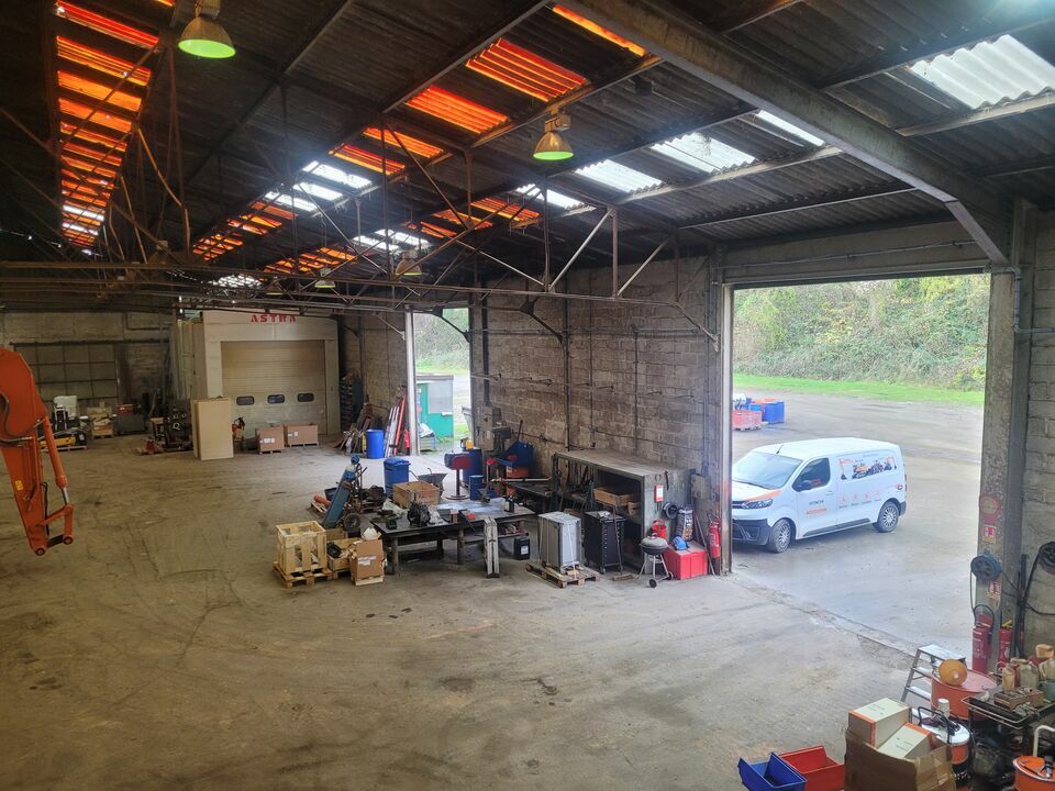 - un atelier d'environ 1 200 m², construit en agglos et bardage, charpente métallique, toiture fibrociment très ancienne et dalle béton.