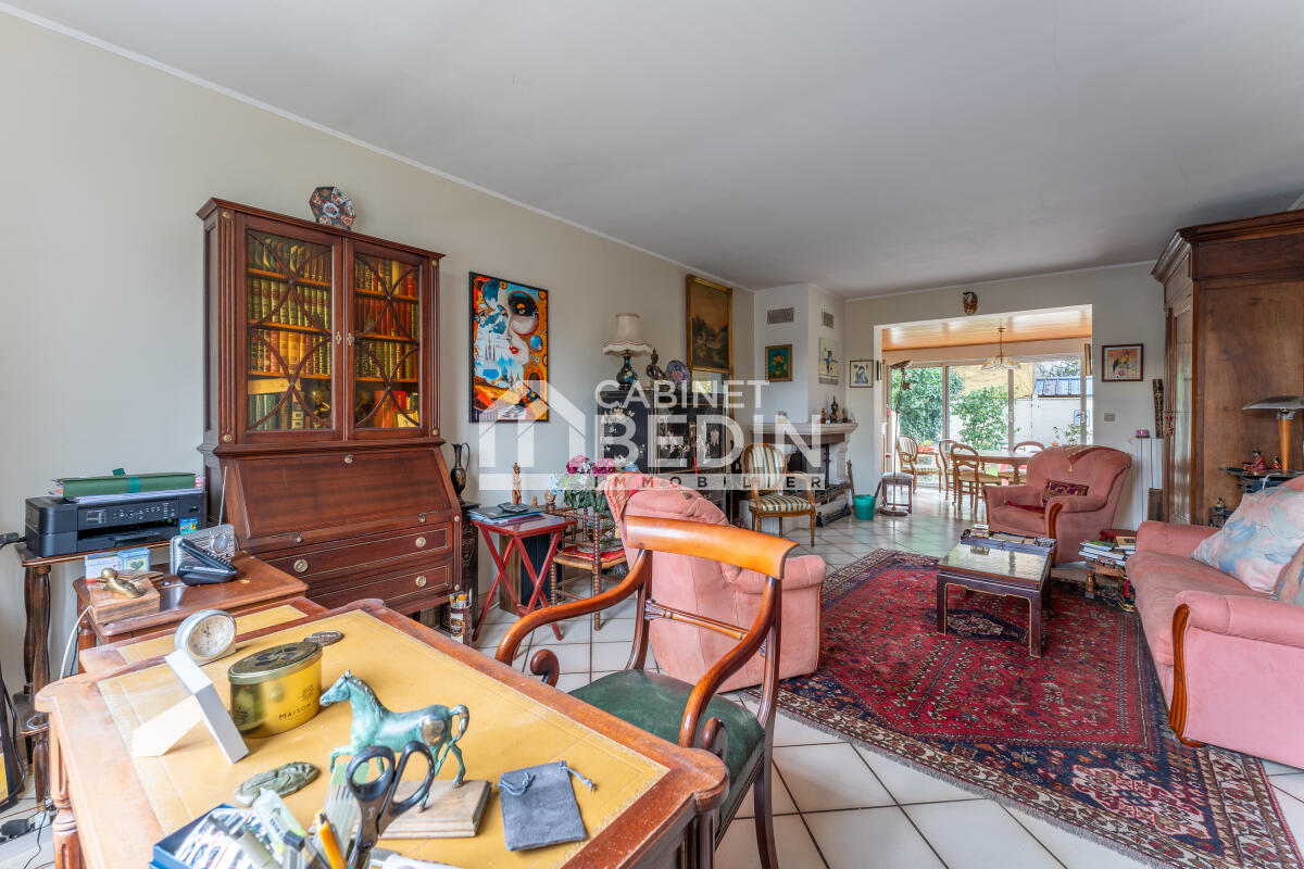 Exclusivité CABINET BEDIN - CAUDERAN LES ORANGERS. Située dans un quartier résidentiel prisé, cette charmante maison de style Art Déco à rénover offre un grand potentiel pour devenir votre future maison idéale. Avec un joli jardin d?accueil, un grand garage et un jardin ensoleillé exposé à l'Ouest, vous profiterez d'un cadre de vie agréable et lumineux. Le rez-de-chaussée se compose d?un spacieux séjour traversant, permettant une belle luminosité naturelle tout au long de la journée, et d'une cuisine dinatoire idéale pour vos repas en famille ou entre amis. À l'étage, vous trouverez trois chambres dont une avec un point d'eau privé, un bureau, ainsi qu'une salle de bain et un WC séparé. La maison dispose également d'une cave, offrant un espace supplémentaire pour le stockage. Des travaux sont à prévoir pour remettre cette maison aux goûts du jour et exploiter tout son potentiel. C?est une opportunité rare pour les amoureux de l?Art Déco et les passionnés de rénovation !. Les informations sur les risques auxquels ce bien est exposé sont disponibles sur le site Géorisques : www. georisques. gouv. fr. Logement à consommation énergétique excessive : classe F. Montant estimé des dépenses annuelles d?énergie pour un usage standard : entre 3000 et 4000 Euros/an (année de référence 2025)