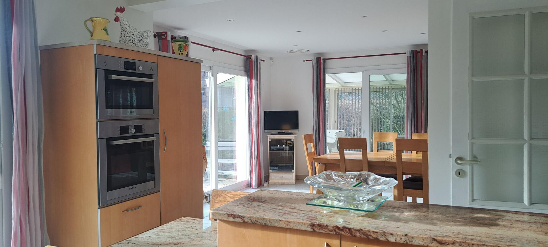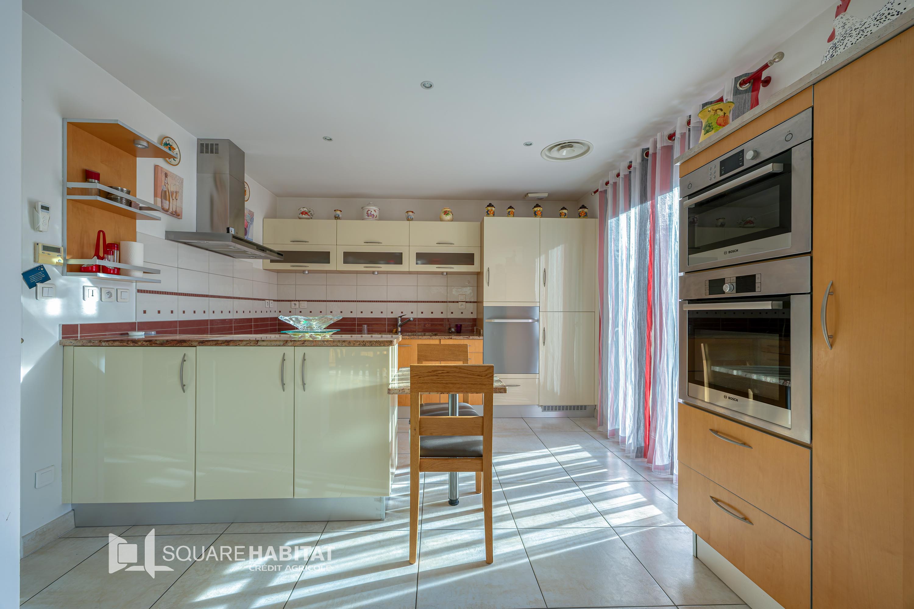 - Au rez de chaussée: entièrement de plain-pied: un espace de vie bien pensé se décline avec une suite parentale, buanderie, véranda de 20 m² , pièce de vie lumineuse ouverte et magnifique cuisine aménagée entièrement équipée, pour une surface totale de 48 m².