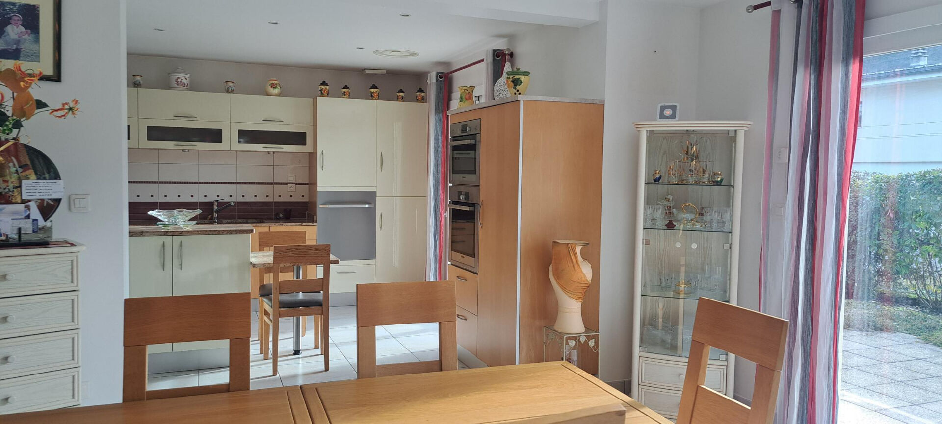 Belle terrasse, double garage de 42 m² avec portes électriques accessible par l'intérieur de la maison , terrain plat et clos agrémenté d'un terrain de pétanque et de beaux arbres fruitiers et d'ornement.