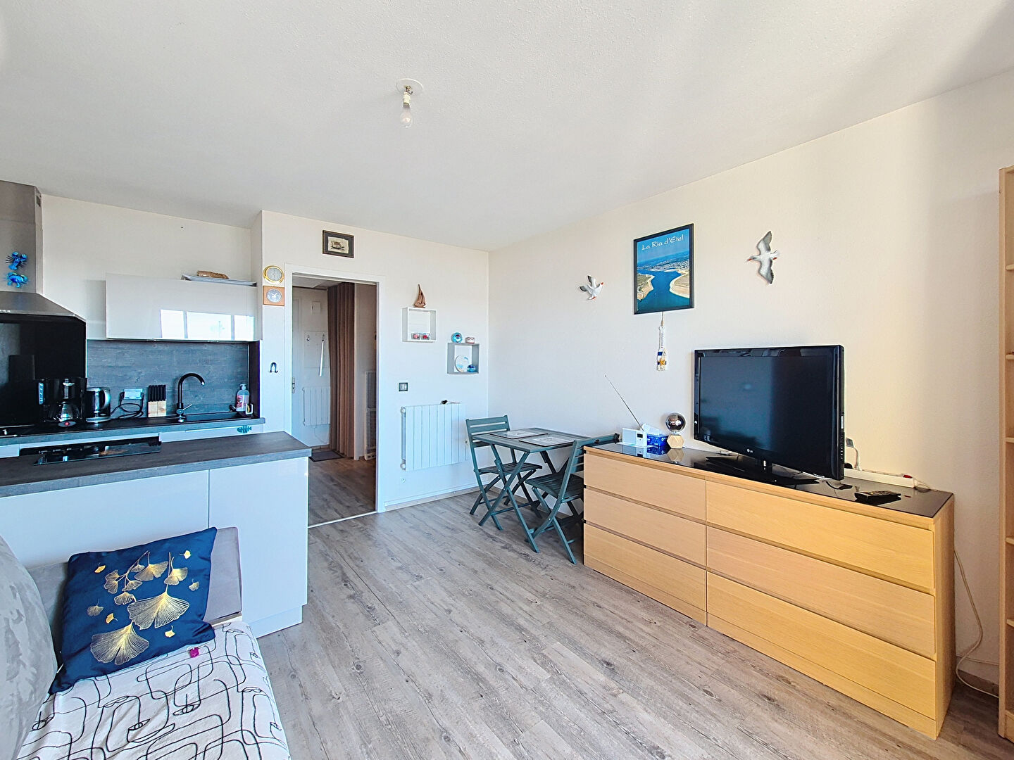 ETEL - Studio coin cabine vendu meublé. Il se compose d'une entrée coin cabine avec placard, une salle d'eau, toilettes, cuisine aménagée équipée ouverte sur la pièce de vie donnant accès à une terrasse et jardinet.
