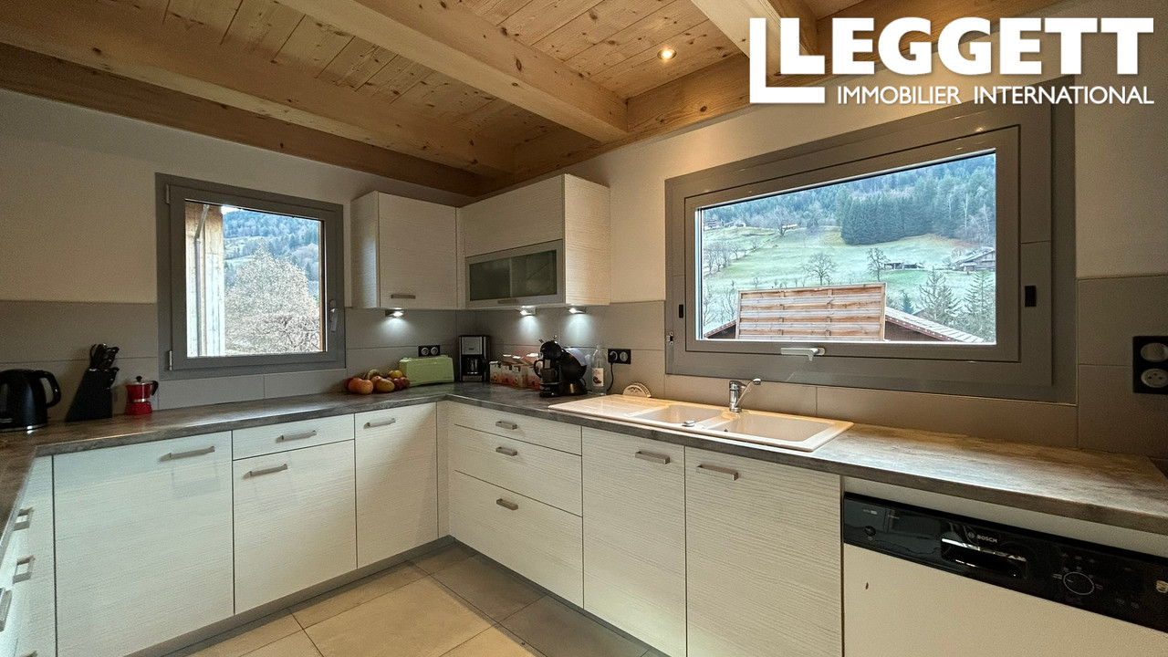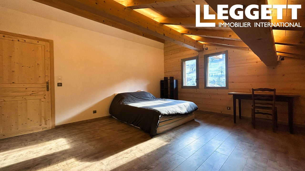 A41673MAS74 - Découvrez ce chalet moderne et baigné de lumière, construit en 2012, offrant une surface totale au sol de 174 m² (131 m² Loi Carrez), une exceptionnelle surface annexe/utile de 147 m² ainsi qu'une terrasse ensoleillée de 66 m². Édifié sur un terrain de 893 m² avec une vue panoramique sur le massif des Aravis, il propose des espaces de vie ouverts, de beaux volumes et une luminosité remarquable, alliant confort contemporain et grande flexibilité d'aménagement.