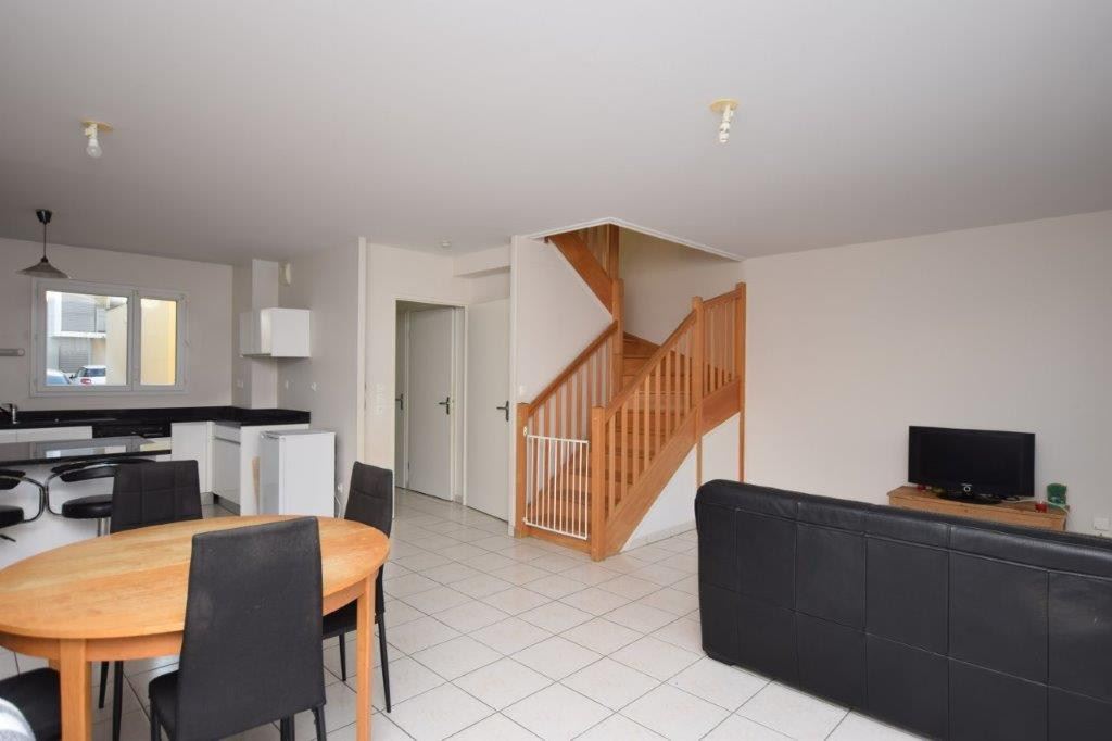 La Salvetat Saint Gilles, agréable maison T4 à étage comprenant entrée, grand séjour avec cuisine américaine équipée donnant sur terrasse bois et jardin, trois chambres avec placards, 2 WC, buanderie, chauffage gaz chaudière à condensation, eaux chaude sanitaire sur panneaux solaires, garage.