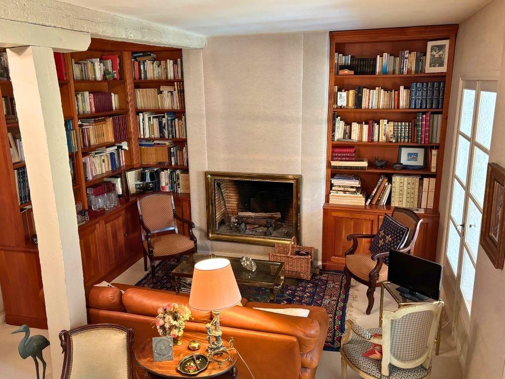 Au rez-de-chaussée, côté rue, se trouve l'entrée avec un grand couloir desservant une cuisine, une bibliothèque avec cheminée , une chambre de 15m², un WC séparé, une salle de bain.