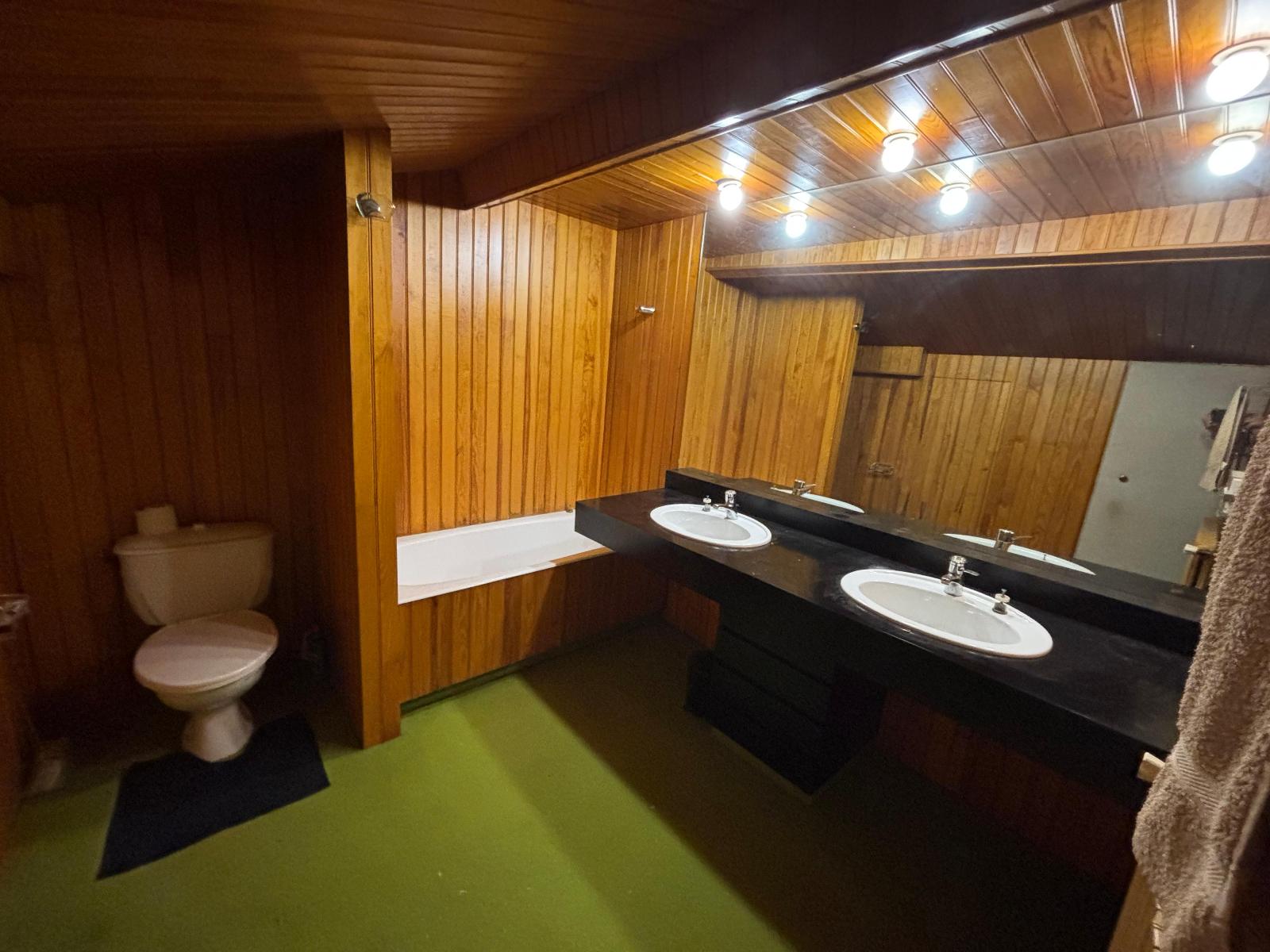 Cette bâtisse sur deux niveaux d'environ 160m² de surface habitable, édifiée sur un terrain arboré et clos de 1027m² est composée :
