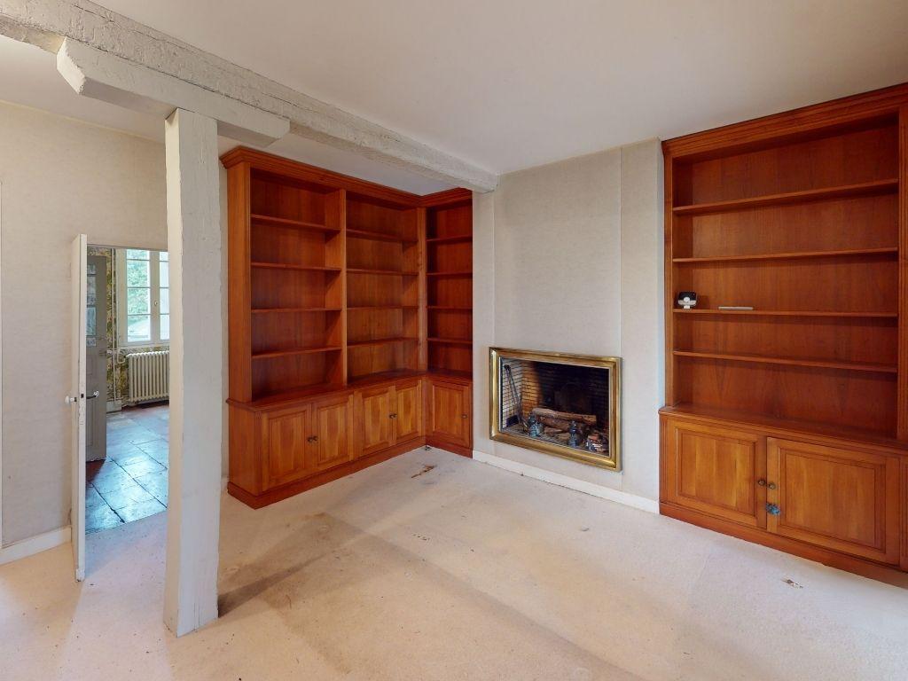 Dès l'entrée, un large couloir distribue une cuisine, une bibliothèque avec cheminée, une chambre de 15 m², une salle de bain et des WC séparés. Côté jardin, la maison s'ouvre sur une très grande pièce de vie baignée de lumière, réunissant salon et salle à manger autour d'une cheminée contemporaine. Les larges baies vitrées offrent une belle continuité vers le jardin paysagé et invitent à profiter des extérieurs.