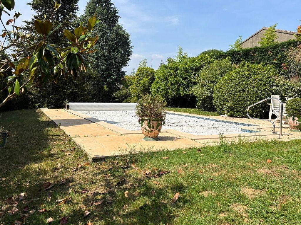 À l'extérieur, le jardin intime accueille une piscine de 9 x 5 m avec terrasse et volet roulant sécurisé. Une chaufferie attenante avec grenier et cave, ainsi qu'un abri voiture, viennent compléter l'ensemble.