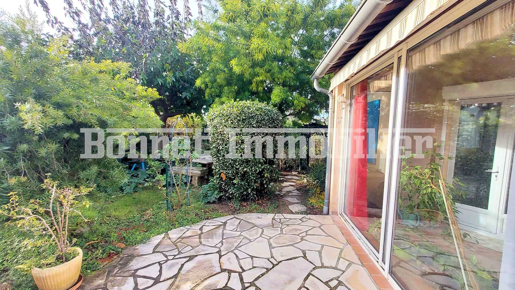 Dans un quartier résidentiel proche des commodités, villa de plain-pied fonctionnelle et lumineuse sur terrain clos et arboré de 830 m2 avec quelques fruitiers (cerisier, olivier, figuier, abricotier), et abri de jardin.