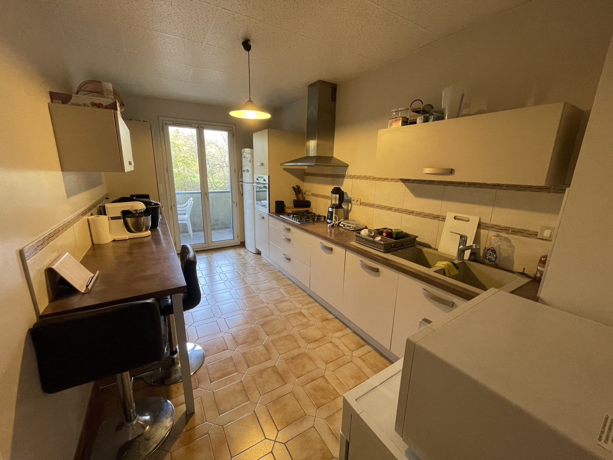 Aujourd'hui, le local est structuré en espace de vente boulangerie (27 m2) et en appartement type 6 de 110 m2, mais il peut être entièrement réimaginé selon votre activité.