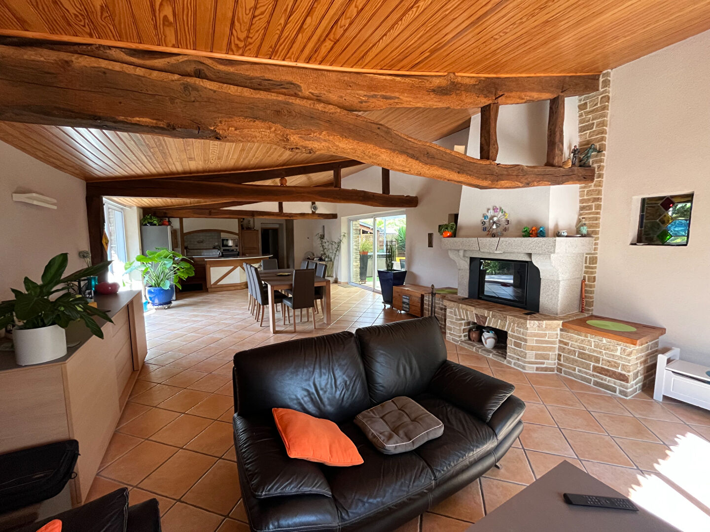 L'agence Ligné immobilier est heureuse de vous présenter cette longère en pierre au calme de la campagne avec un magnifique terrain arboré. Cette longère vous offrira un hall d'entrée avec placard, un dégagement dessert une pièce de vie très agréable de plus de 61 m² avec une triple exposition et cuisine ouverte équipée et aménagée, un wc, deux chambres, une sde, une buanderie, une sdb. A l'étage, un bureau et une chambre avec de fortes mansardes.