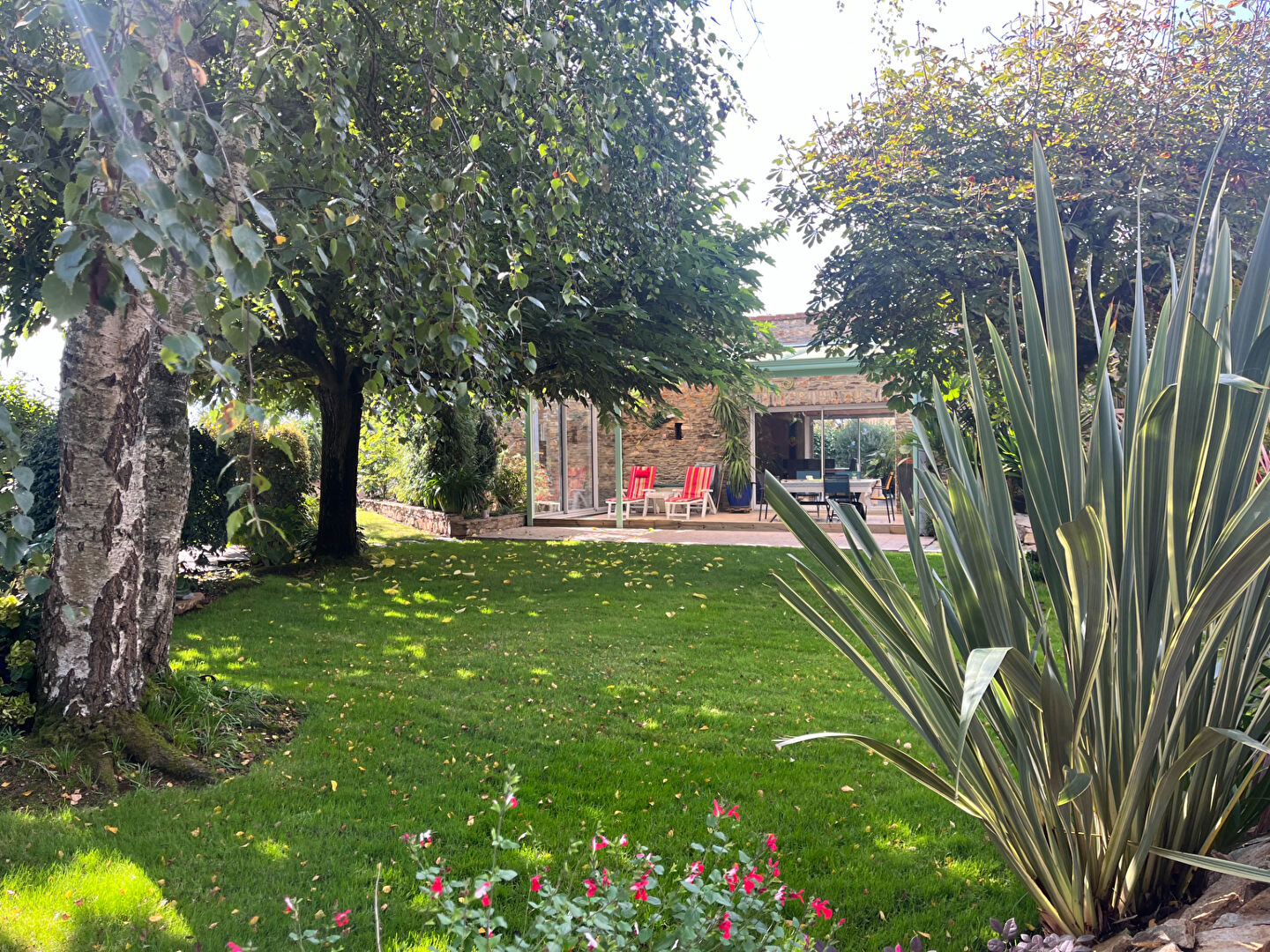 En annexe un carport, une terrasse sur un agréable terrain paysager et arboré de plus de 1300 m² .