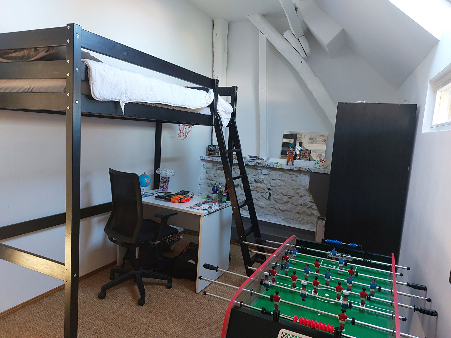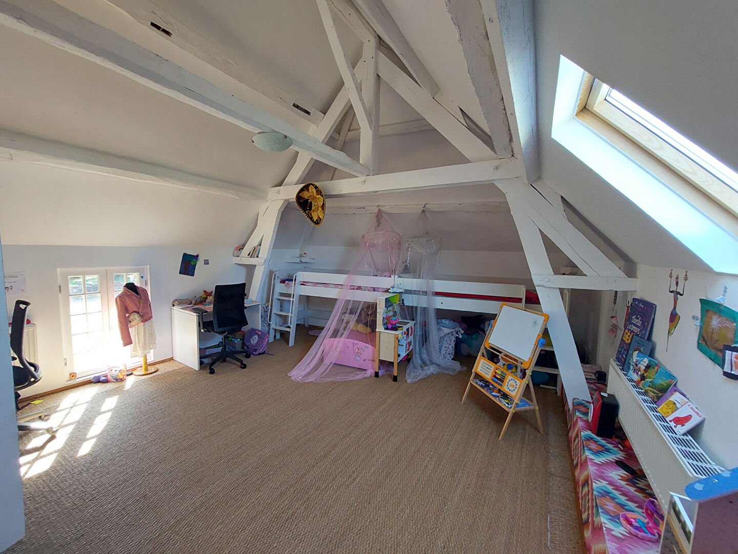 A l'étage un palier dessert une suite parentale avec une salle d'eau entièrement neuve ainsi qu'un dressing. A ce même niveau vous trouverez également deux grandes chambres et une salle d'eau avec WC. Un grand couloir permet d'aménagé un agréable espace de jeux.