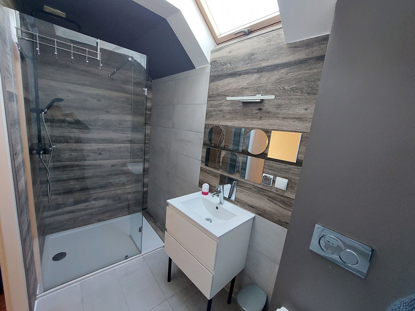Vous trouverez au rez-de-chaussée une très grande de pièce de vie de plus de 70m² avec une cuisine entièrement équipée et aménagée, une chambre avec une salle de bain attenante et WC.