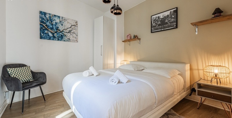 L'espace nuit comprend deux chambres, avec la possibilité d'aménager une troisième chambre selon vos besoins, ainsi qu'une salle d'eau équipée d'une baignoire. Les WC sont indépendants.