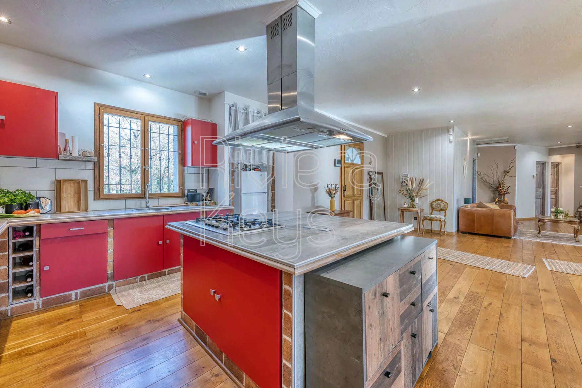 Construite en 2006, la maison offre de beaux volumes et une belle luminosité. Elle se compose d’une vaste pièce de vie de 90 m² avec cheminée et cuisine ouverte, donnant accès à une terrasse couverte de 60 m².