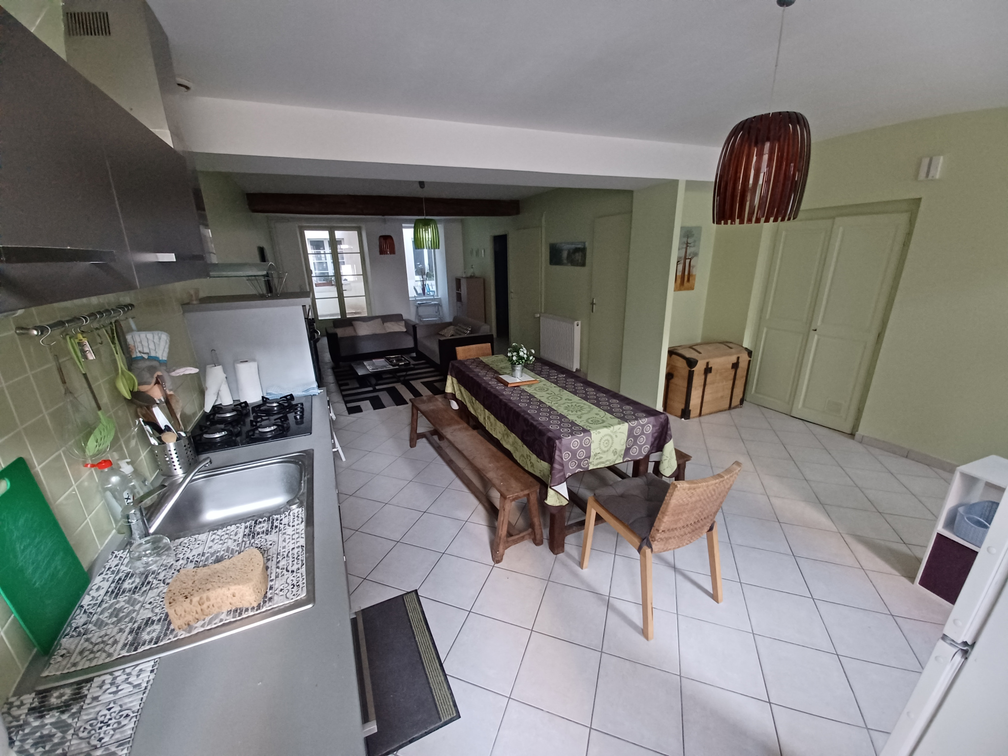 Maison ancienne, en grande partie rénovée, comprenant en rez de chaussée une grande pièce à vivre avec coin cuisine aménagée, wc, rangements et donnant sur cour privée sans vis à vis.