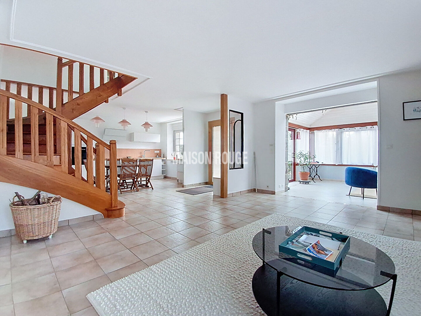 Dès l'entrée, le rez-de-chaussée dévoile une cuisine neuve, entièrement aménagée et équipée, ouverte sur une vaste pièce de vie baignée de lumière, composée d'un salon/ salle à manger avec cheminée. Une élégante véranda, exposée sud-ouest, prolonge harmonieusement cet espace et offre une vue dégagée sur le jardin.