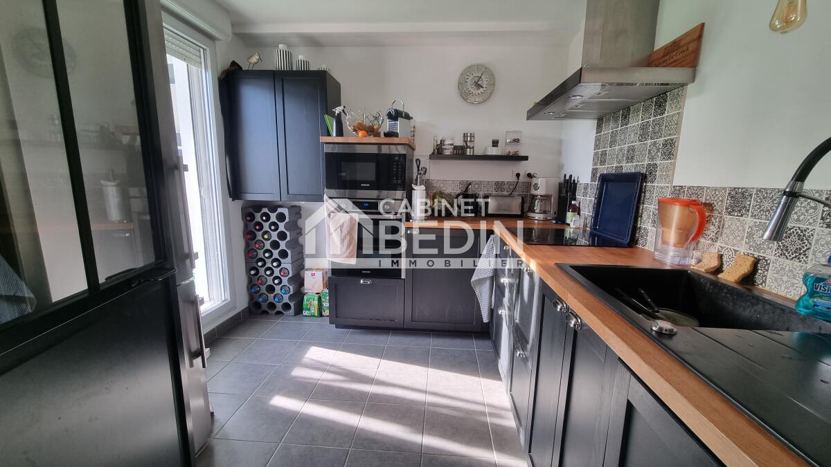 La cuisine moderne, parfaitement intégrée, bénéficie elle aussi d?un accès direct à la terrasse. L?espace nuit propose trois belles chambres, pensées pour le confort, ainsi qu?un cellier fonctionnel. Un box fermé et électrifié ainsi que la possibilité de louer une deuxième place de parking complètent ce bien rare.
