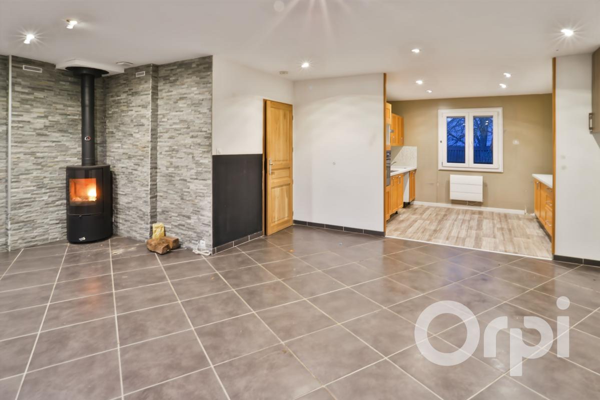 5min de Saint Clair Sur Epte et 14kms de Magny en Vexin, Maison de plain pied sur sous sol total offrant: Entrée sur séjour double avec poêle à bois avec cuisine aménagée et équipée, salle d'eau avec douche à l'italienne et double vasque, wc, couloir, 2 chambres, chauffage électrique, sous sol avec garage (porte motorisée), fenêtres PVC double vitrage, jardin clos de 940m².