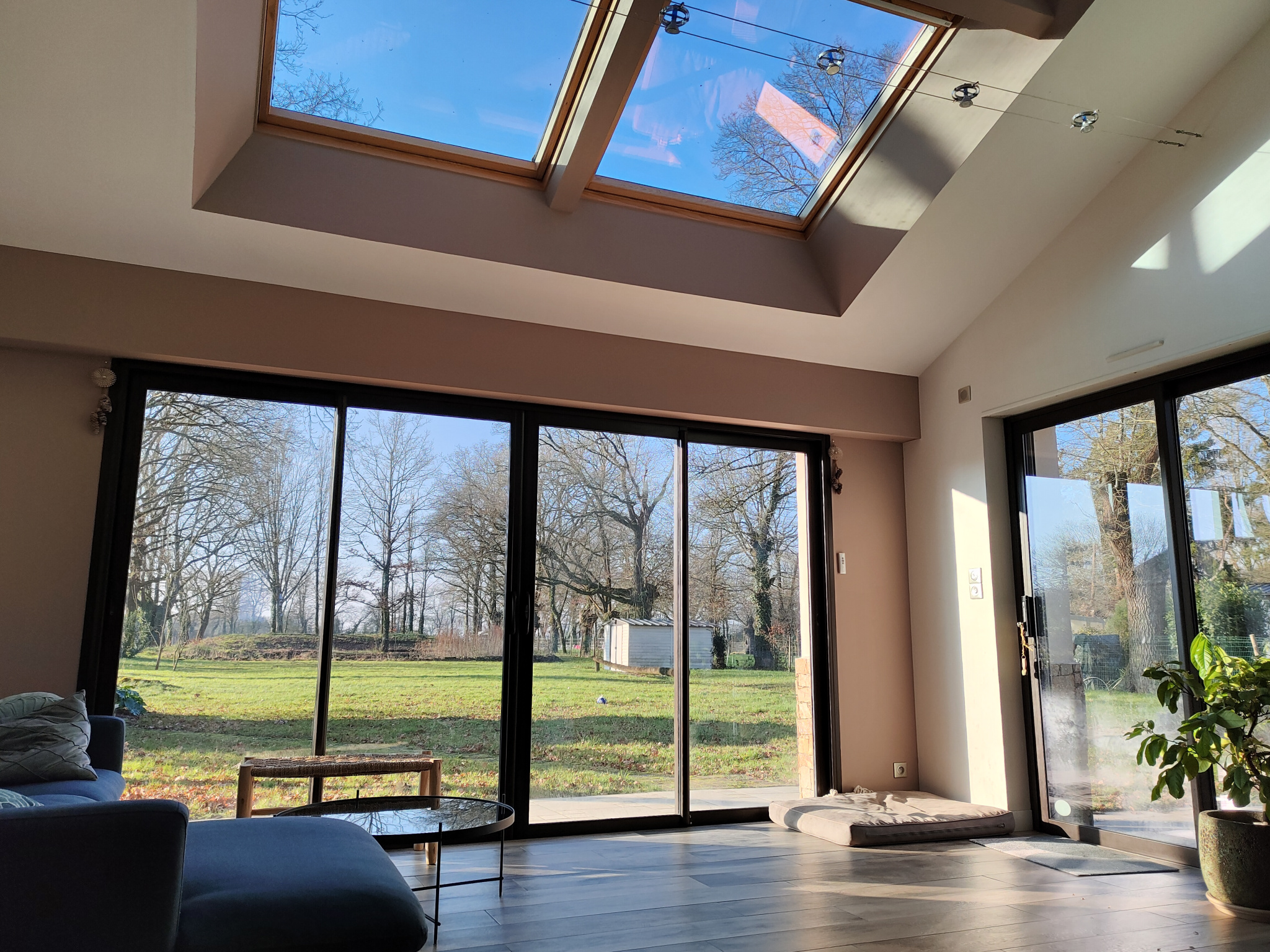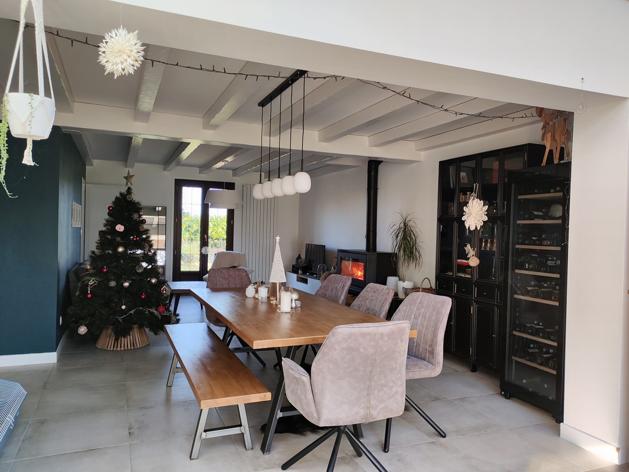 Dès l'entrée, vous serez séduit par un vaste salon-séjour de 54 m2, baigné de lumière et agrémenté d'un poêle à bois. Ses larges ouvertures offrent une vue imprenable sur un superbe jardin paysager de 3 000 m2 ainsi que sur une terasse intime.