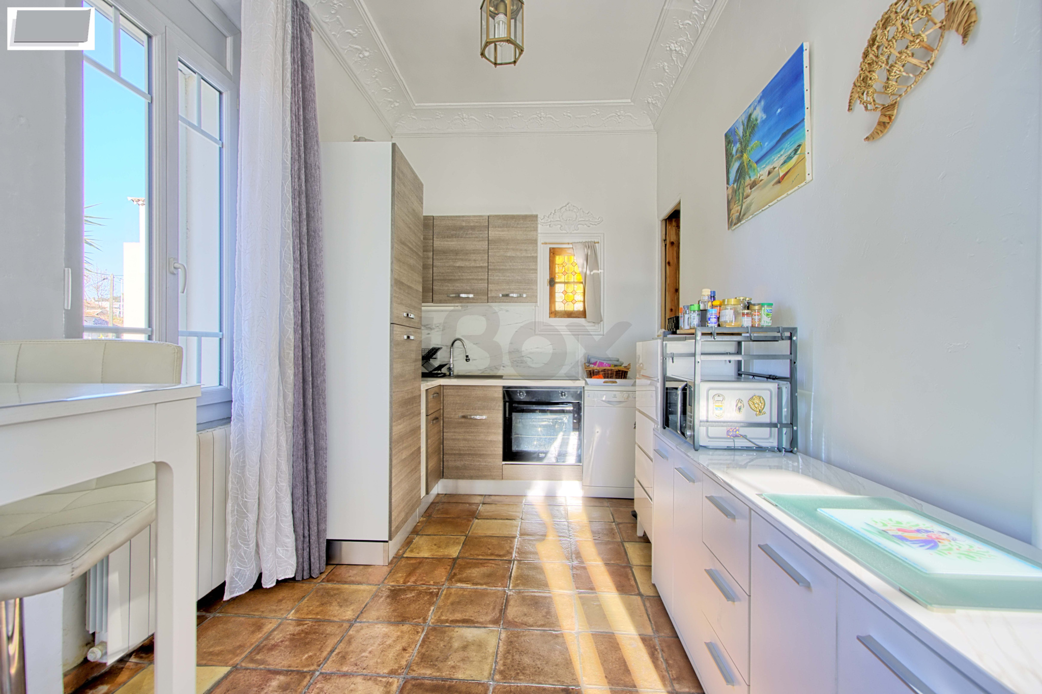 D'une superficie de 120m2 elle se compose au rez de chaussée d'un grand T2 avec belle cuisine, séjour, petite chambre, salle d'eau avec wc. A l'étage grand séjour avec cuisine ouverte et terrase plein sud, une belle chambre, hall, salle d'eau, wc.