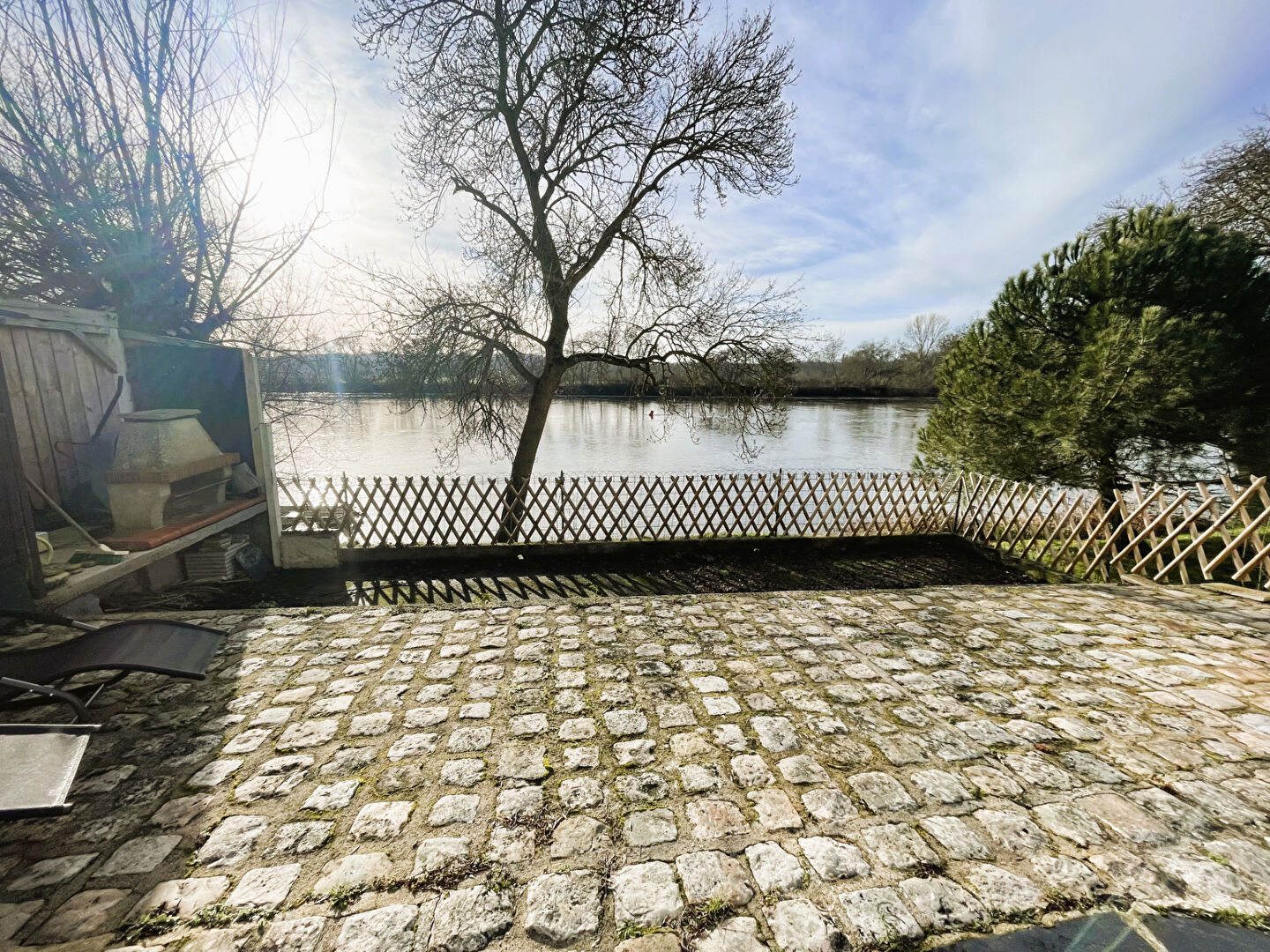 La maison se compose d'une belle pièce de vie lumineuse, avec cheminée, ouverte sur une terrasse dominant le fleuve, parfaite pour les moments de partage en famille.