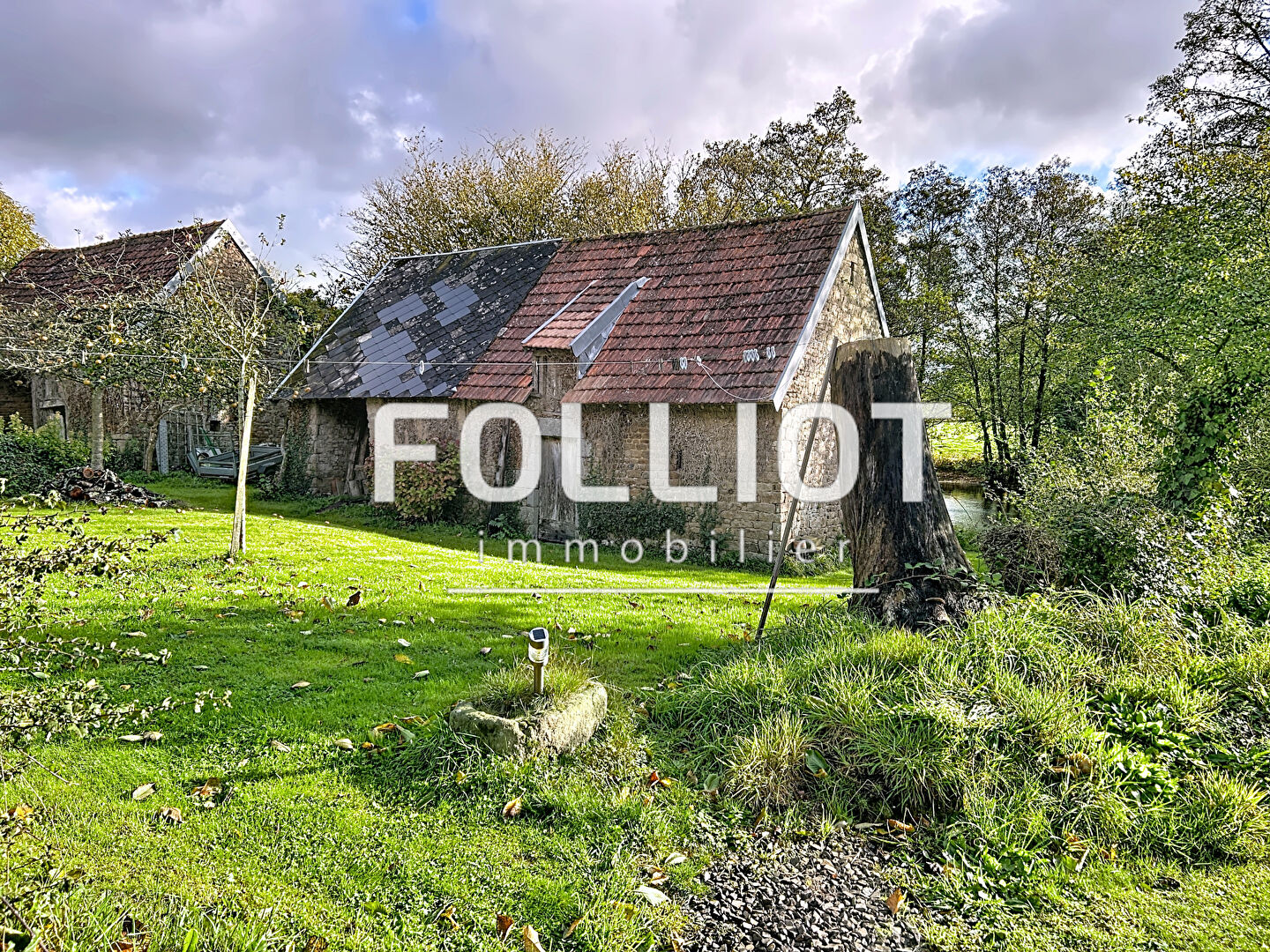 Quartier historique en campagne de Sartilly, beaucoup de charme et d'authenticité pour cette propriété en pierres exposée sud , comprenant pièce de vie avec coin cuisine et cheminée, 3 chambres à l'étage. Deux dépendances en pierres a remettre en état et une ancienne boulangerie rénovée en appartement. Terrain environ 1751m² bordé par un étang.