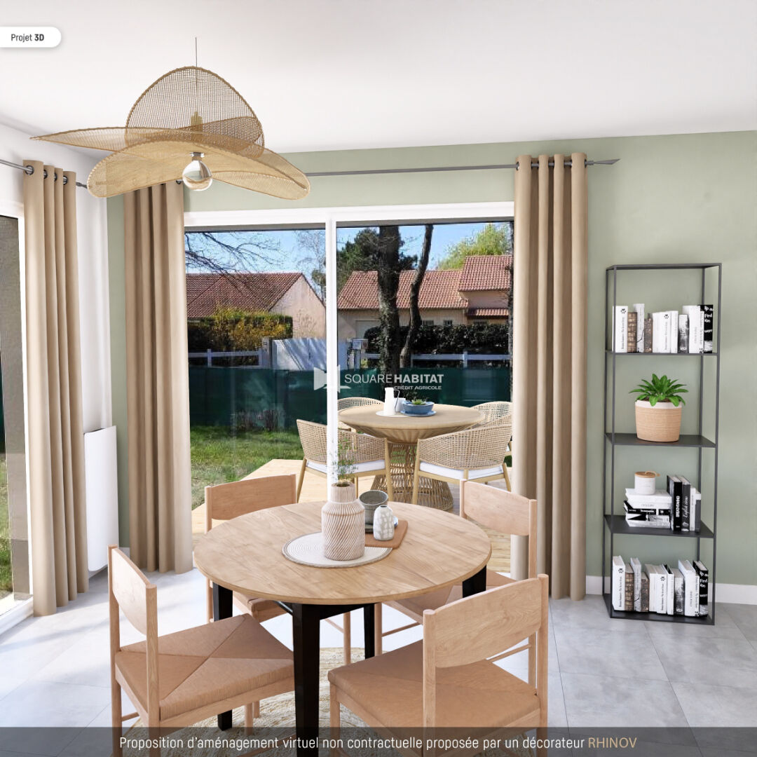 Au rez-de-chaussée, une pièce de vie baignée de lumière avec cuisine aménagée et équipée.
