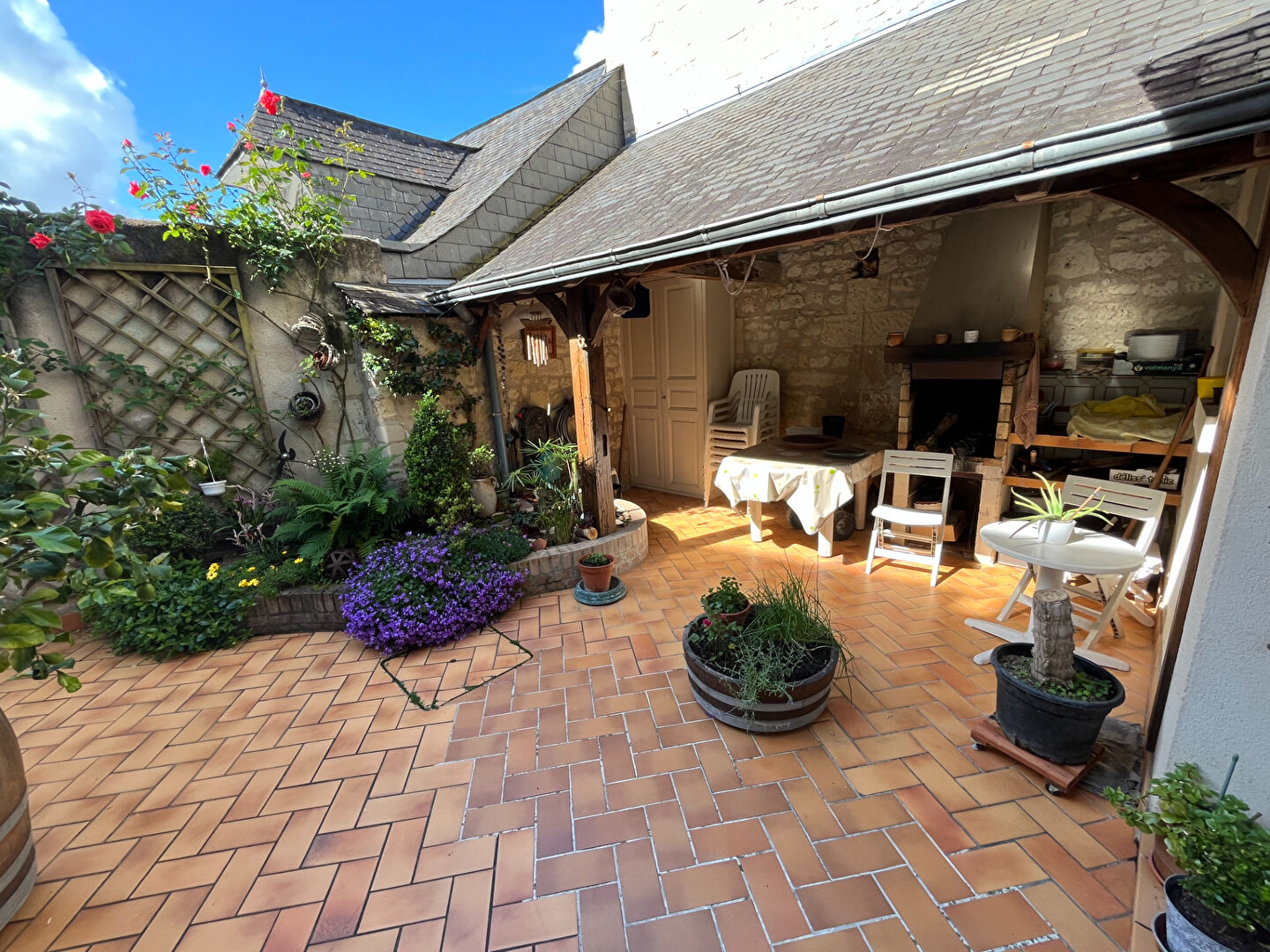 Manon vous propose en exclusivité garantie revente 7 ans - Au coeur de Bourgueil, cette maison familiale de caractère datant des années 1800, aux beaux volumes. Dès l'entrée vous serez accueilli par un immense escalier en bois massif à deux quarts tournants ouvrant en rez-de-chaussée sur un petit salon avec accès cour ainsi qu'une superbe pièce de vie et cuisine de 50 m² . Les étages offrent une distribution idéale avec au premier niveau deux chambres, un WC et une salle de bains avec douche, puis au second trois chambres supplémentaires et un WC. Un accès indépendant dans le salon mène à un autre étage comprenant deux chambres et une salle d'eau. Bénéficiez d'une très belle cave voûtée, d'un espace arrière-cuisine buanderie, et d'une cour extérieure carrelée avec préau ainsi qu'un garage, un bien rare en plein centre, visite virtuelle sur demande. Nous sommes joignables du lundi au samedi de 9h00 à 19h00.