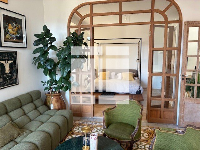 L'entrée s'ouvre sur un vaste séjour double, baigné de lumière grâce à ses larges ouvertures. Deux balcons offrent une vue dégagée sur les ruelles pittoresques du centre-ville. La cuisine ouverte et équipée prolonge l'espace de vie, créant une atmosphère conviviale et chaleureuse.