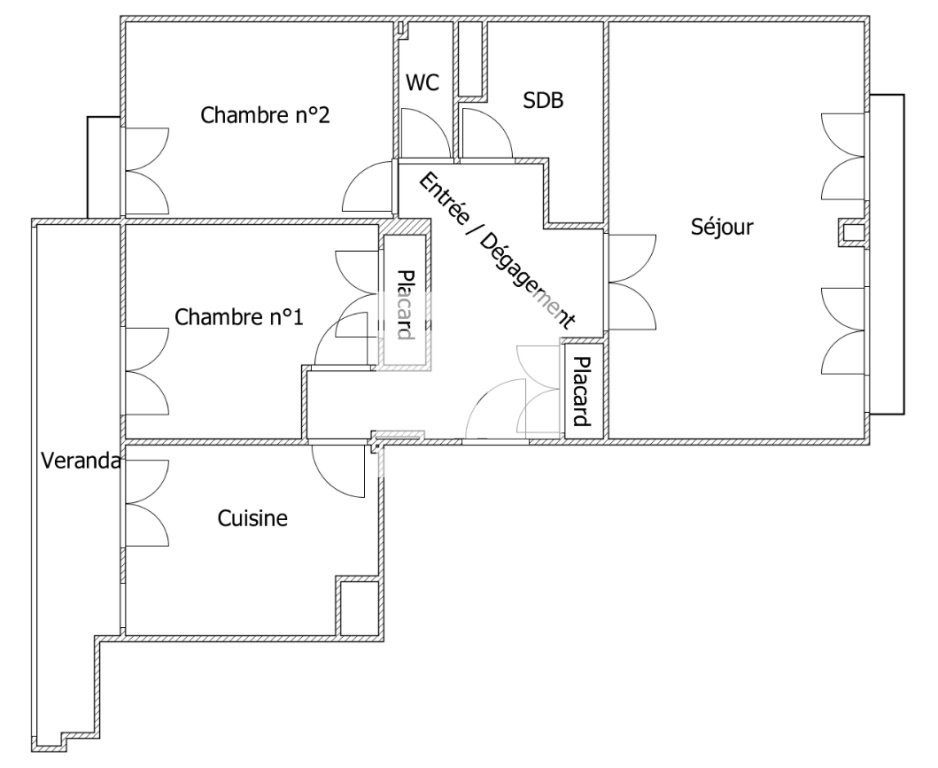 un hall d'entrée, un séjour et une salle à manger, une cuisine séparée donnant sur une loggia, deux chambres au calme, une salle de bains et un WC séparé.