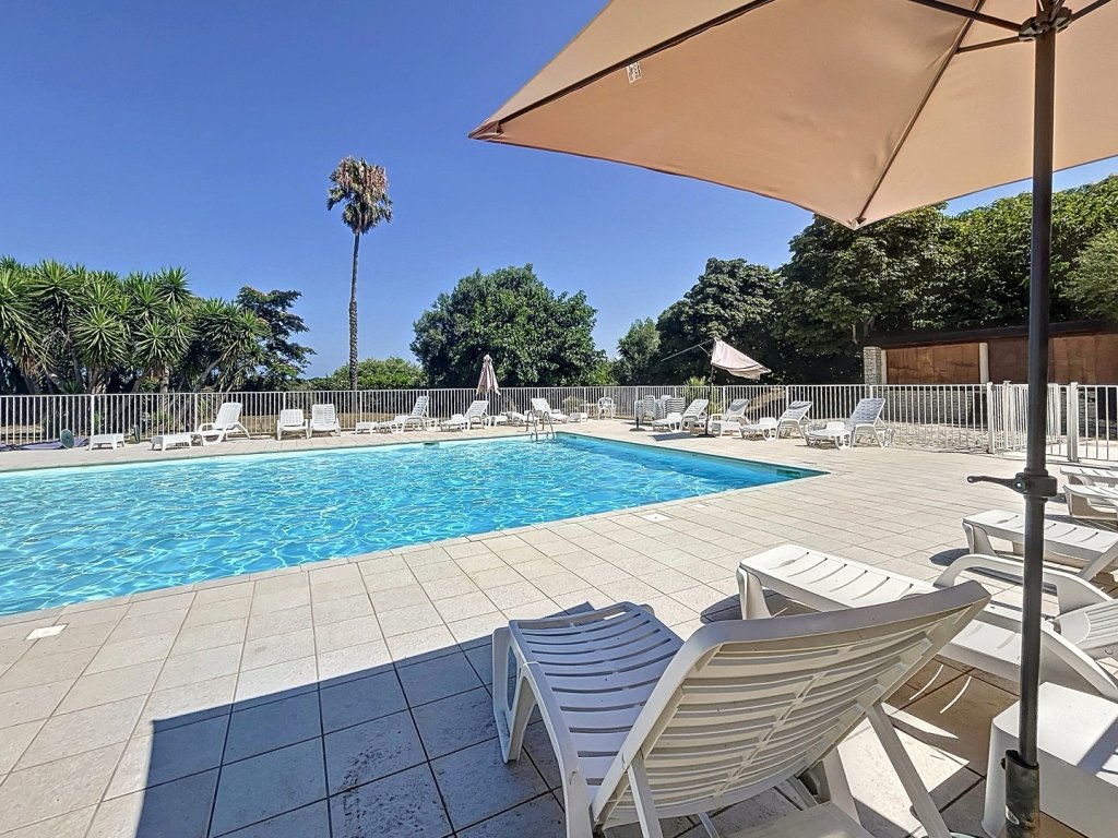 Vue dégagée sur le jardin et la piscine avec accès direct - parking exterieur privé à la résidence.