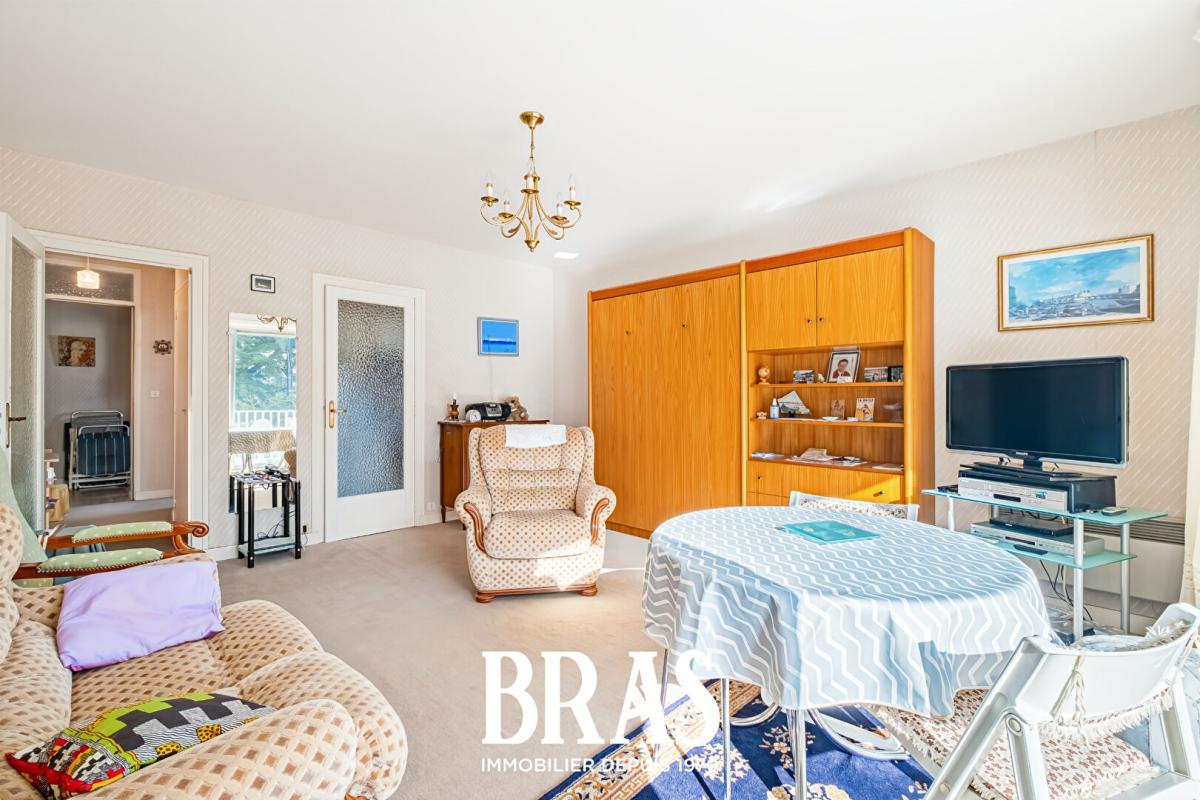 EXCLUSIVITÉ - Dans une résidence face mer du quartier des Oiseaux, au 1er étage, proche du marché et de l'avenue de Gaulle, votre agence BRAS Immobilier vous propose un appartement avec vue latérale mer comprenant une entrée, un séjour avec accès au balcon, une cuisine, une chambre, deux salles d'eau avec w-c. Cave.