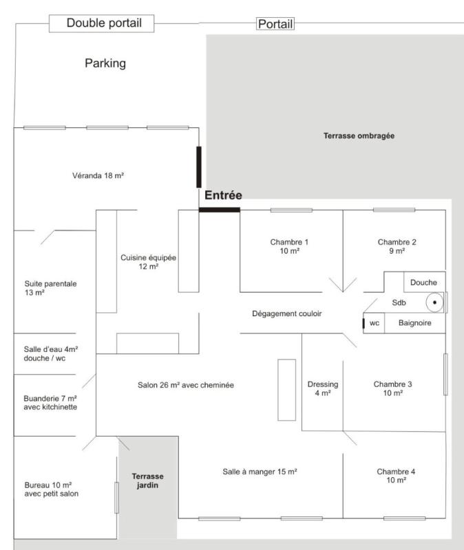 Elles est composée en plain-pied et idéale pour un projet familial partagé :