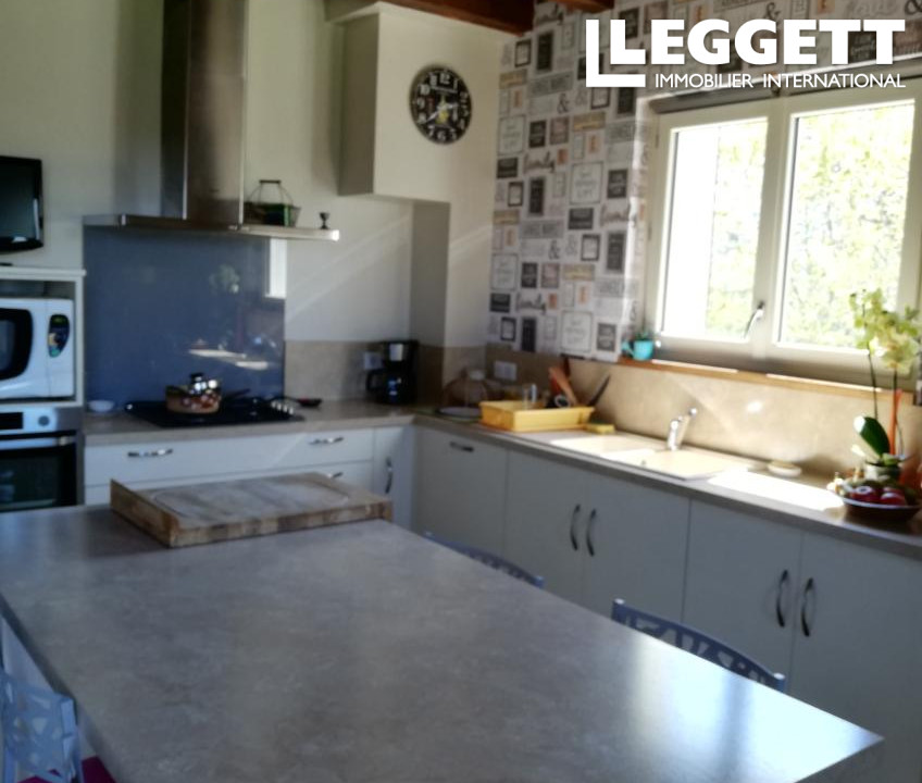 Vous profiterez d'un salon lumineux avec poêle à bois neuf, d'une cuisine équipée avec îlot central, de 4 chambres dont une au rez de chaussée, d'une grande salle d'eau, ainsi que d'un garage pour deux véhicules.
