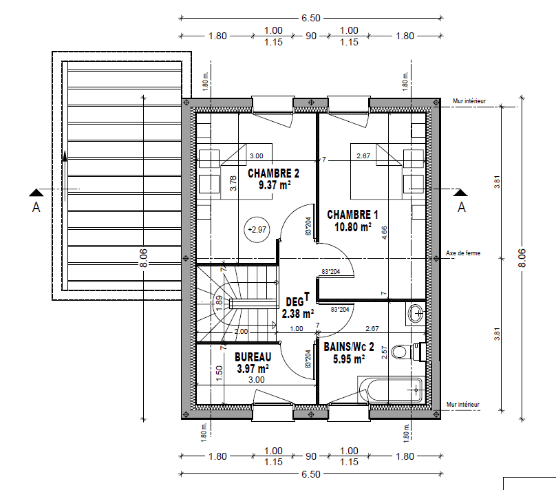 Construite selon la norme RT 2020, cette maison allie modernité et confort. Au rez-de-chaussée, vous trouverez une entrée accueillante, une cuisine aménagée et équipée ouverte sur un spacieux salon-séjour, ainsi qu'une salle de bains fonctionnelle. À l'étage, un dégagement dessert deux chambres, un bureau idéal pour le télétravail ou un espace de lecture, et une salle de bains avec WC.