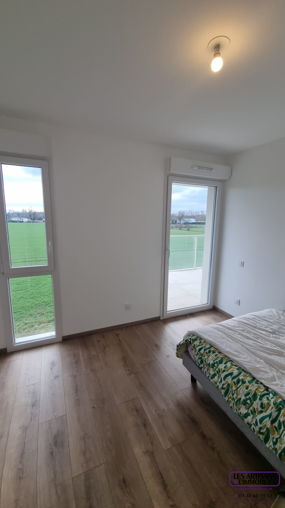 Vue sur la pleine campagne, à 15 mns du Centre ville au Sud de METZ, quartier résidentiel et calme, au 1 er étage /2, dans immeuble 2024 avec ascenseur, appartement F3, 66,30 m2, 2 ch. + terrasse Sud Est 14 m2, garage en sous-sol, Chauffage ind. gaz. Ligne de bus L5. Commerces à prox. Accès aisé A31.