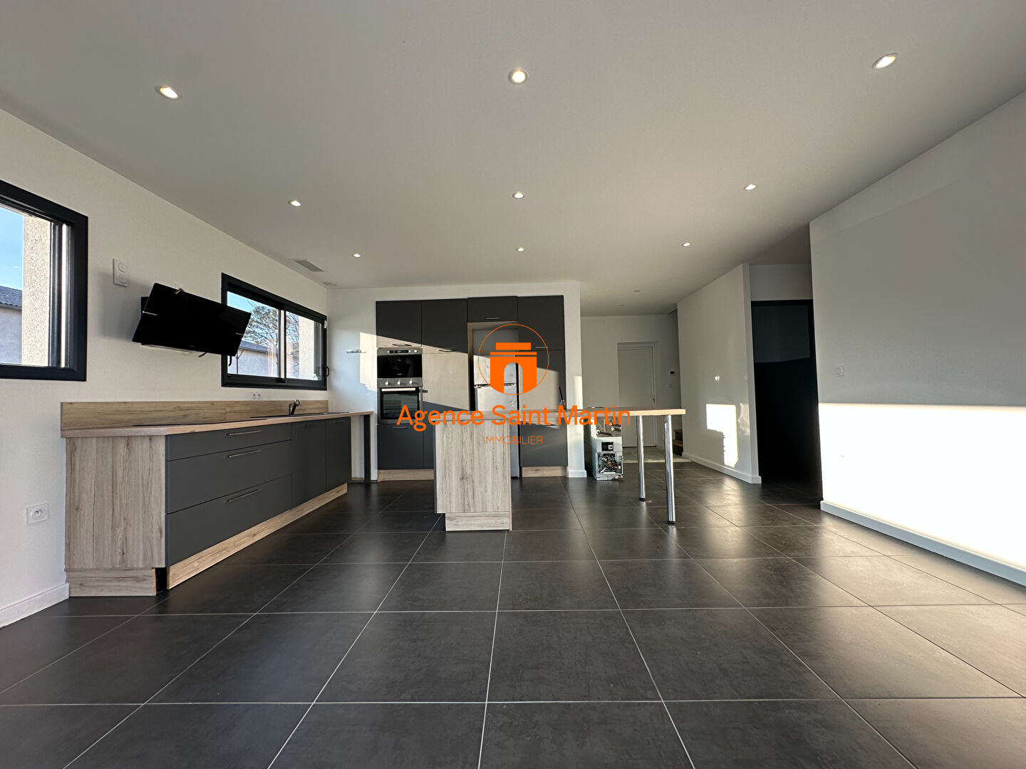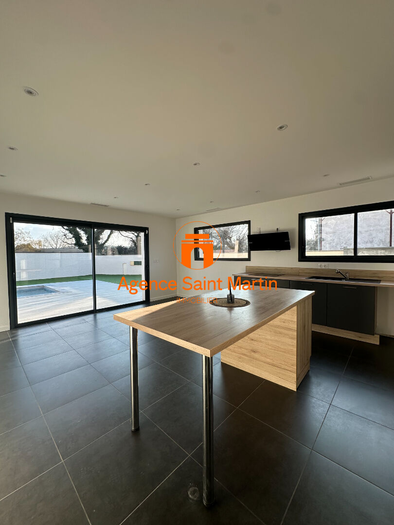 Maison 118 m² de 2013 sur 400 m² de Terrain clos avec Piscine. Au Rdc, Hall, pièce à vivre avec cuisine équipée ouverte, une suite parentale avec chambre et SDE. A l'étage, 3 chambres et une SDB. Bénéficie d'un grand garage.