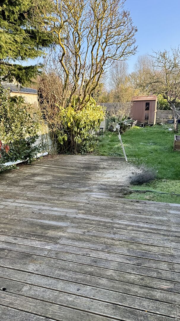 Maison mitoyenne avec un jardin à proximité de la plage, commerces, écoles et gare.