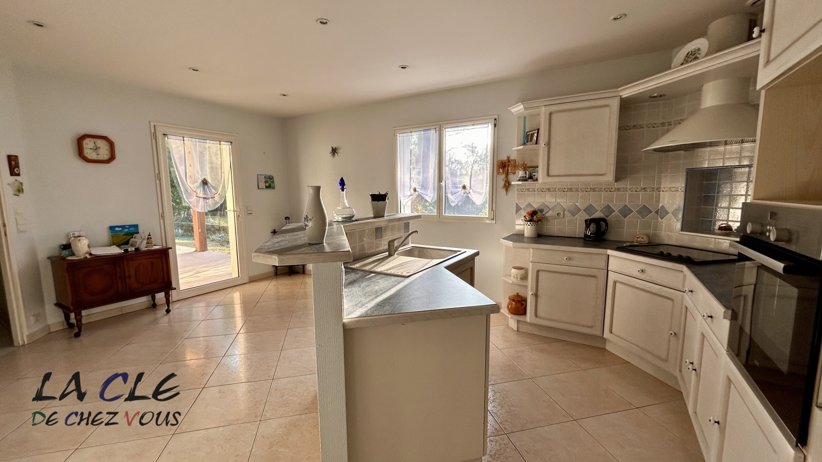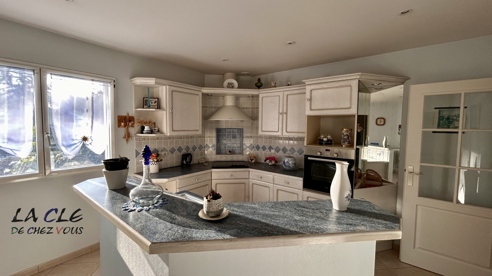 Maison de plain-pied idéalement située, offrant une entrée, une grande pièce de vie lumineuse avec une belle cuisine équipée, 3 chambres, une salle de bains, une salle d'eau et des toilettes. Un grand garage avec cave complète ce bien. Implanté sur un terrain clos et arboré de 1365 m2.