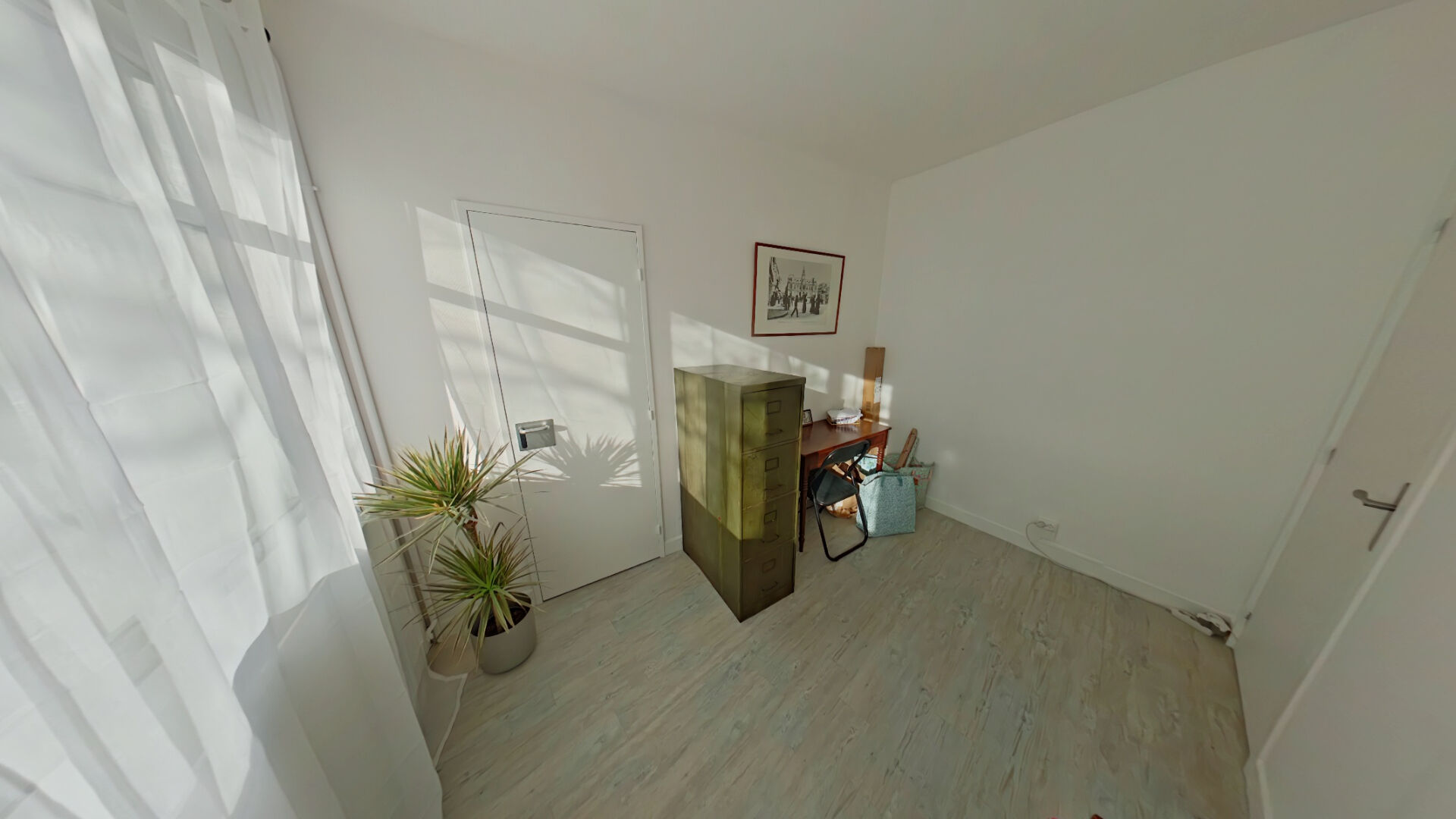 cuisine ouverte sur séjour, deux chambres, salle de bains, WC, bureau et dressing ;