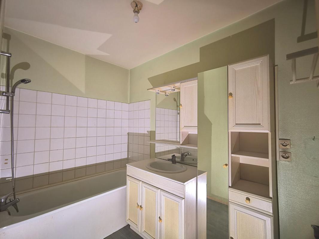 L'appartement s'ouvre sur une entrée prolongée d'un long couloir qui distribue l'ensemble des pièces. Vous y trouverez un séjour lumineux, une cuisine séparée, une chambre d'environ 12 m², une salle de bains, des WC indépendants ainsi qu'un cellier.