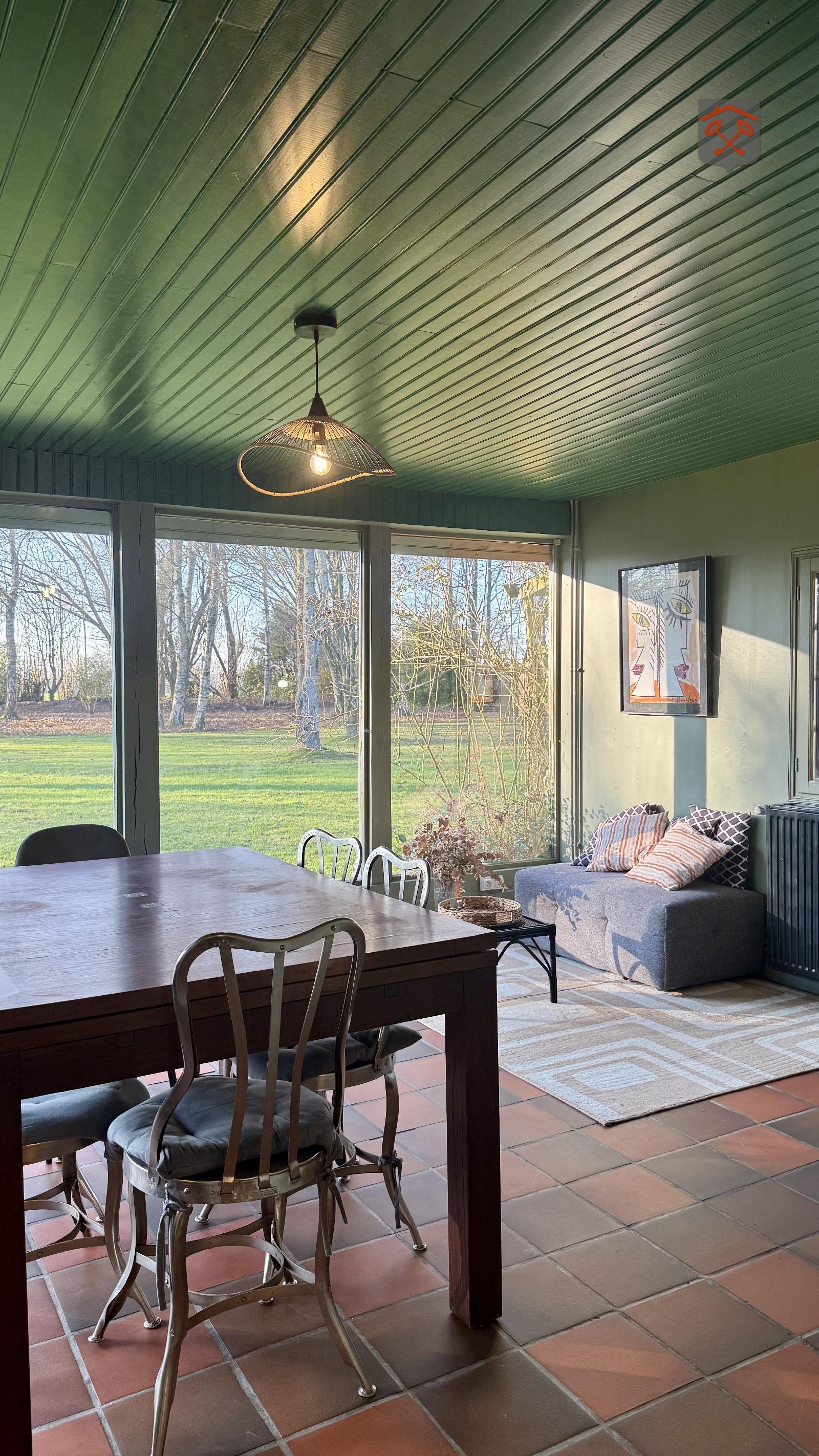 NEYT IMMOBILIER vous propose la ref 2590 - Endroit hydillique, hameau au calme - AGREABLE MAISON rénovée, beaucoup de charme, située au milieu de son Parc : Entrée, cuisine aménagée-équipée, séjour-salon avec cheminée-insert, véranda-salon, salle d'eau avec wc. Etage : palier, 3 chambres, cabinet de toilette avec wc. Chauffage central au gaz. Dépendance à l'écart : 3 garages. Terrain arboré avec mare sur 5190m². Classe énergie C
